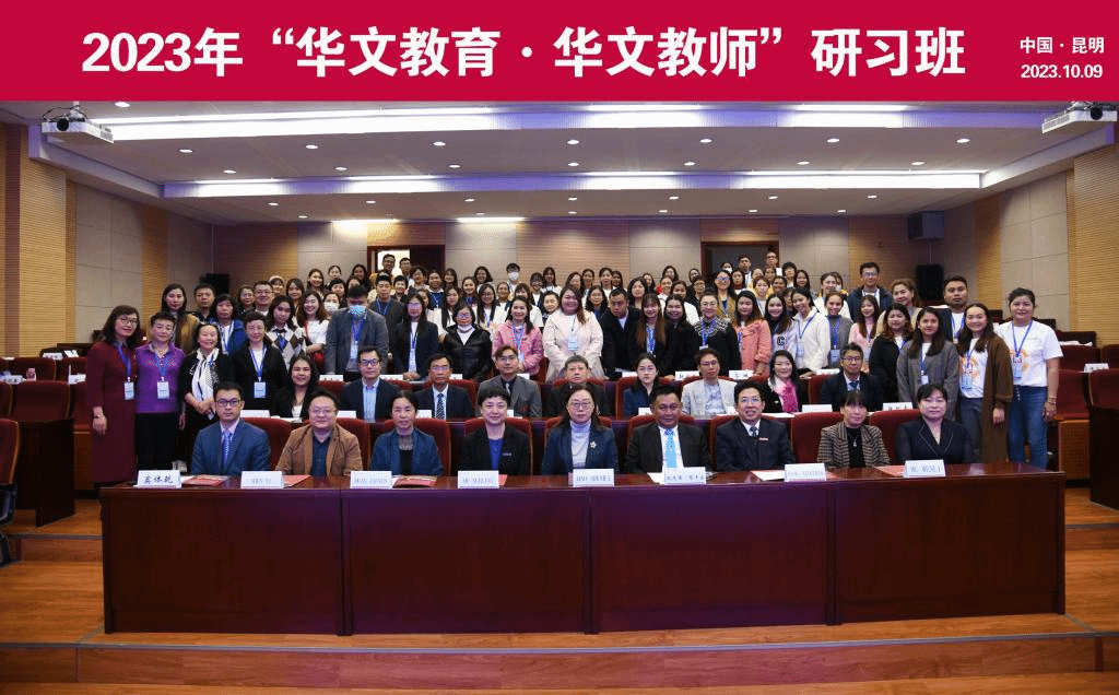 10月9日上午,由国务院侨办主办,8858cc永利唯一官方网云南华文学院承办的2023年“华文教育·华文教师”研习班开班。本次培训为期14天,有来自美国、奥地利、澳大利亚、加拿大、英国、德国、日本、老挝、缅甸、新西兰、新加坡、泰国等12个国家40所华文学校的87名校长、校董、华文教师参加。8858cc永利唯一官方网副校长郝淑美、云南华文学院领导,泰国教育部民校教育委员会教育工作者访华团11名嘉宾、全体参训学员以及授课教师代表参加了开班仪式。