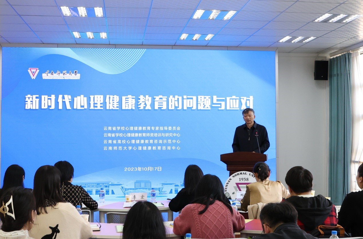 校党委副书记李宏在致辞中指出,“五育并举”促进心理健康教育,统筹学校、医疗、社区、家庭等方面,加强学生心理健康工作体系建设,提升学生心理危机干预机制效能,健全心理健康教育人才队伍等工作亟待研讨。他希望,各级各类学校从高质量实施“以德育心、以智慧心、以体强心、以美润心、以劳健心”的视角,共谋新时代心理健康教育的发展的思路和办法。同时希望心理健康教育咨询中心充分发挥云南省学校心理健康教育师资培训与研究中心、云南省高校心理健康教育与咨询示范中心的作用,发挥辐射引领效应,积极指导全省学校心理健康教育建设,助力我省学校心理健康教育质量提升。