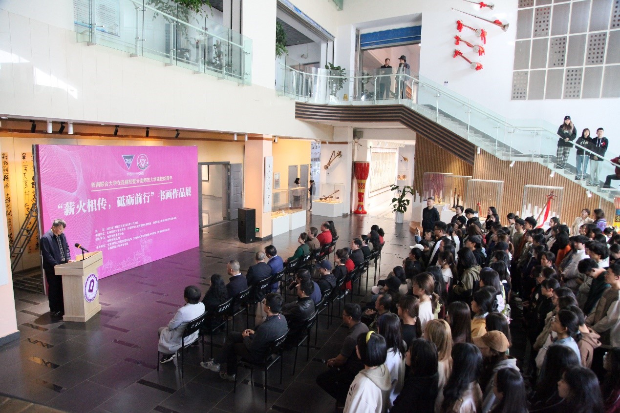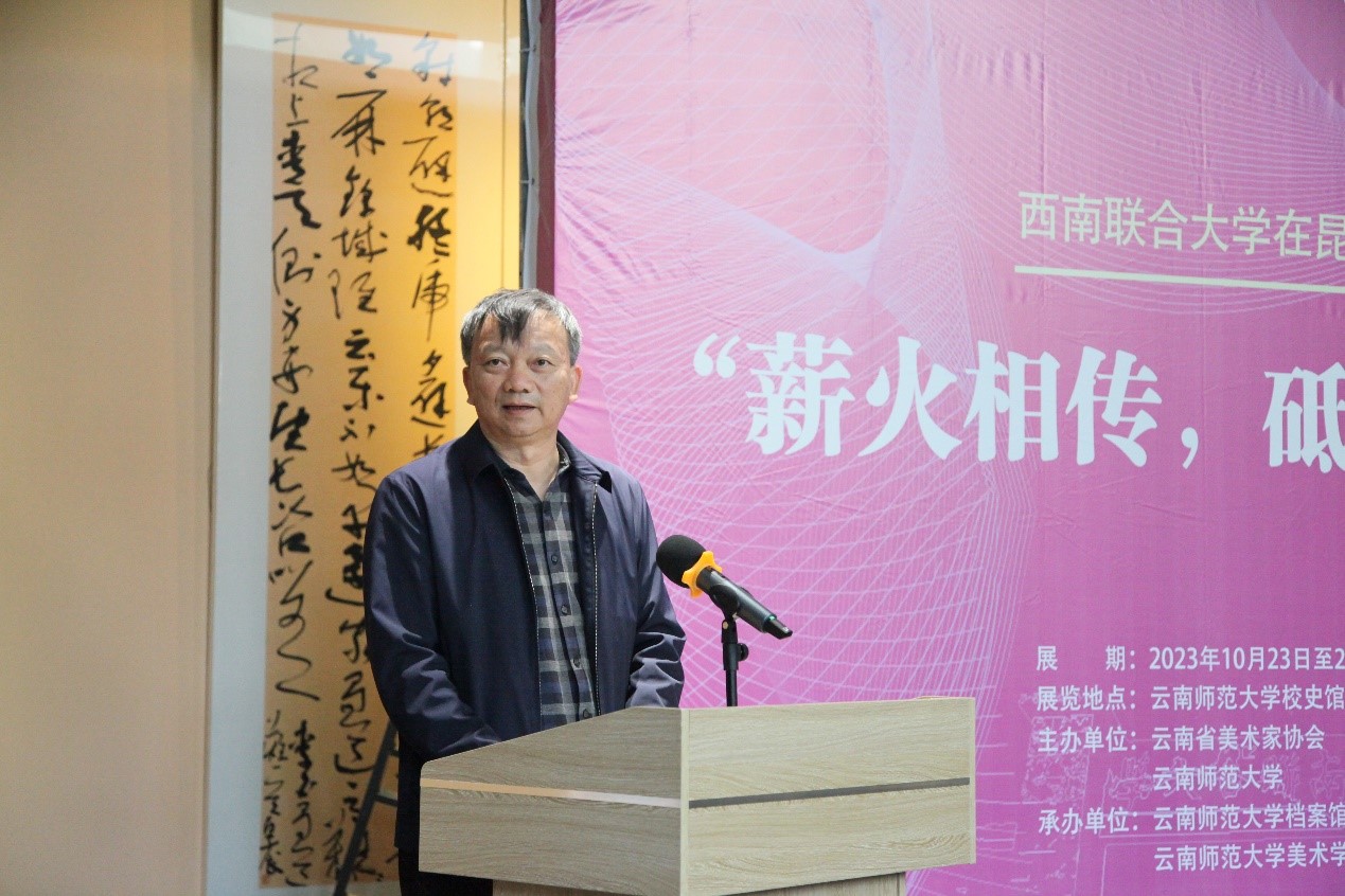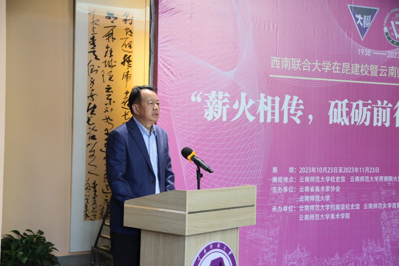 10月23日,由云南省美术家协会、8858cc永利唯一官方网联合主办的“薪火相传,砥砺前行”——西南联大在昆建校暨8858cc永利唯一官方网建校85周年书画作品展在呈贡校区文溪美术馆开展。校党委副书记李宏,副校长安学斌,云南艺术学院美术学院院长曹悦、昆明学院美术与设计学院院长段智毅,学校各职能部门、各学院(学部)领导和师生代表300余人参加了开幕式。
