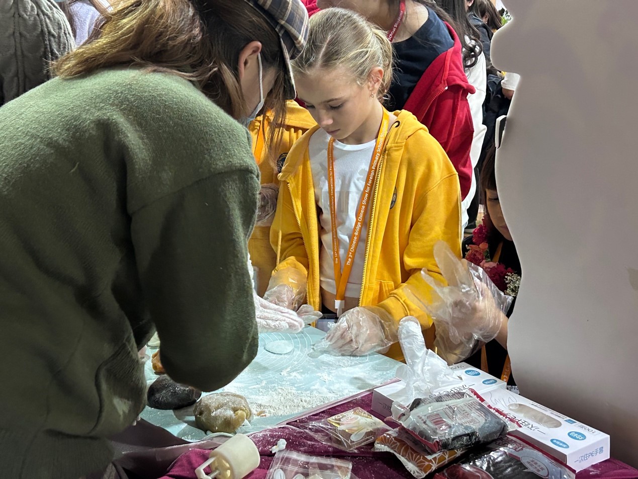 自制冰皮月饼活动也引来大批人围观,粉色与白色的冰皮搭配上暗红色的豆沙馅,选手们纷纷戴上手套,跟随工作人的指导,做出独属于自己的精致的小月饼,团一团、捏一捏、划一划、压一压,一块块圆圆的冰皮月饼就呈现在手中。“放入口中,软软糯糯甜甜的,感觉很新奇。我还想要尝试一下其它样式的月饼,做了就能吃到,这是我第一次尝试做月饼、吃月饼,这次的经历真的很不错。”来自黑山共和国的柏爱莉开心地说。