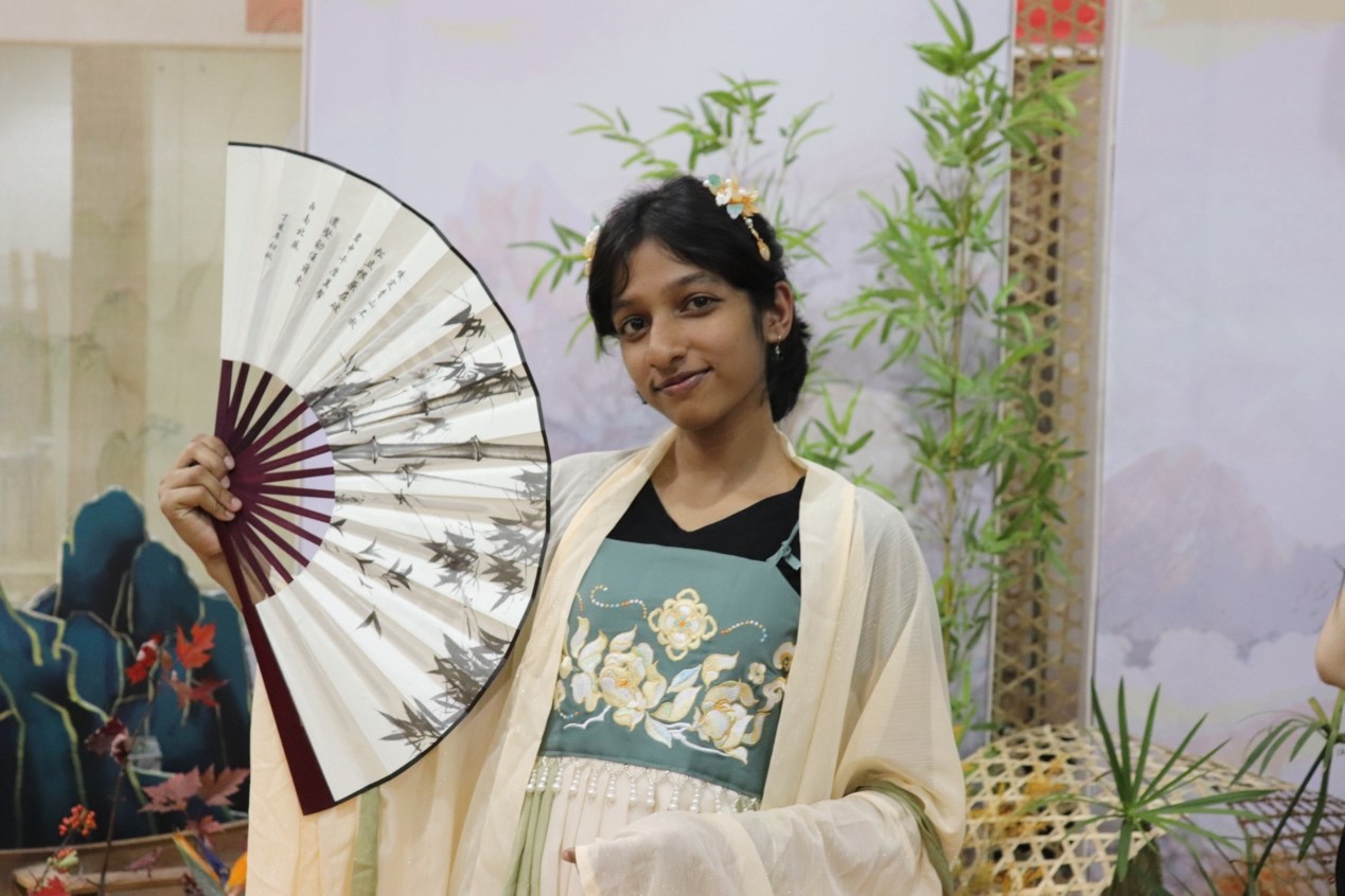 小小的一把团扇,需要多道工序才能做成。不少外国友人拿着毛笔跃跃欲试,迫不及待地在团扇上作画,在工作人员的指导下,不一会儿,树木、花草、汉字等跃然团扇,一个属于他们自己的作品即将完成。来自亚美尼亚的丽丽特说道:“很感激中国朋友们为我们准备的这一系列活动,体验感十分棒,希望在未来的日子里能够接触到更多的中国传统文化。”