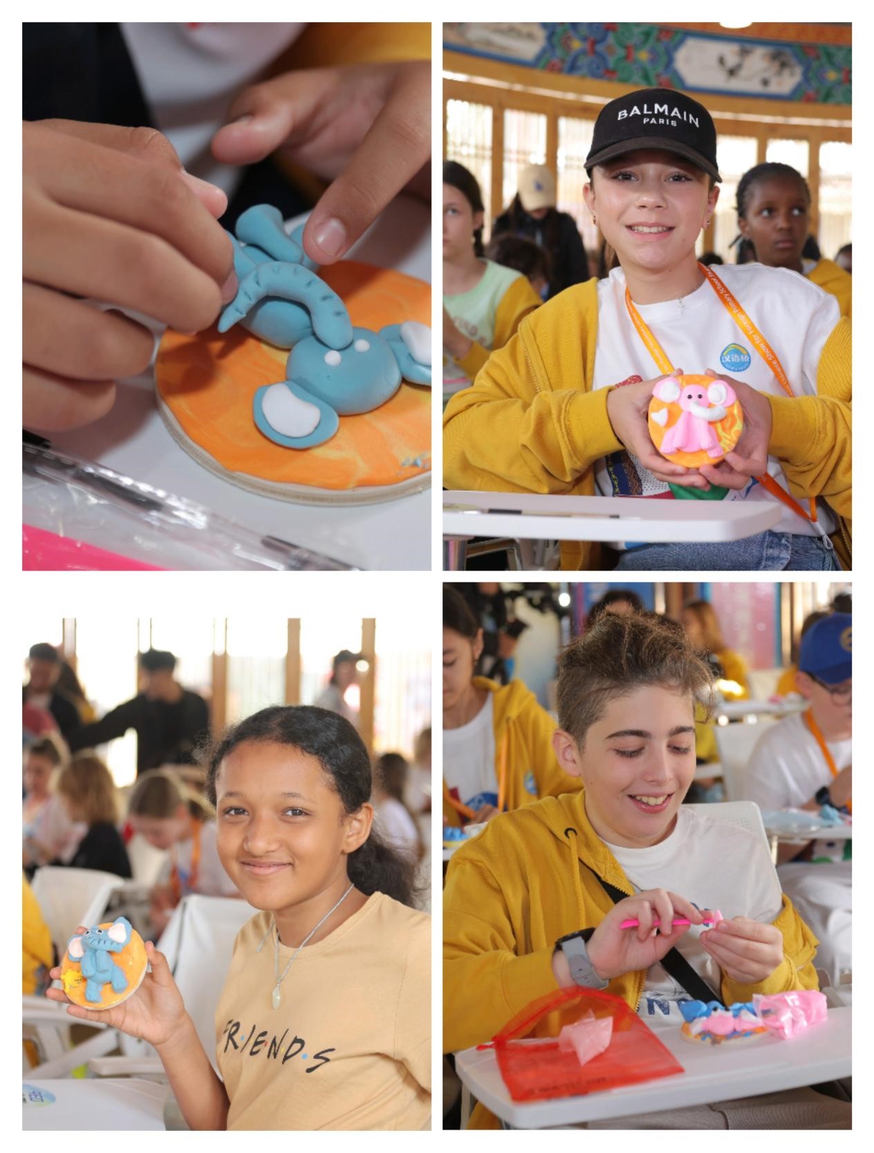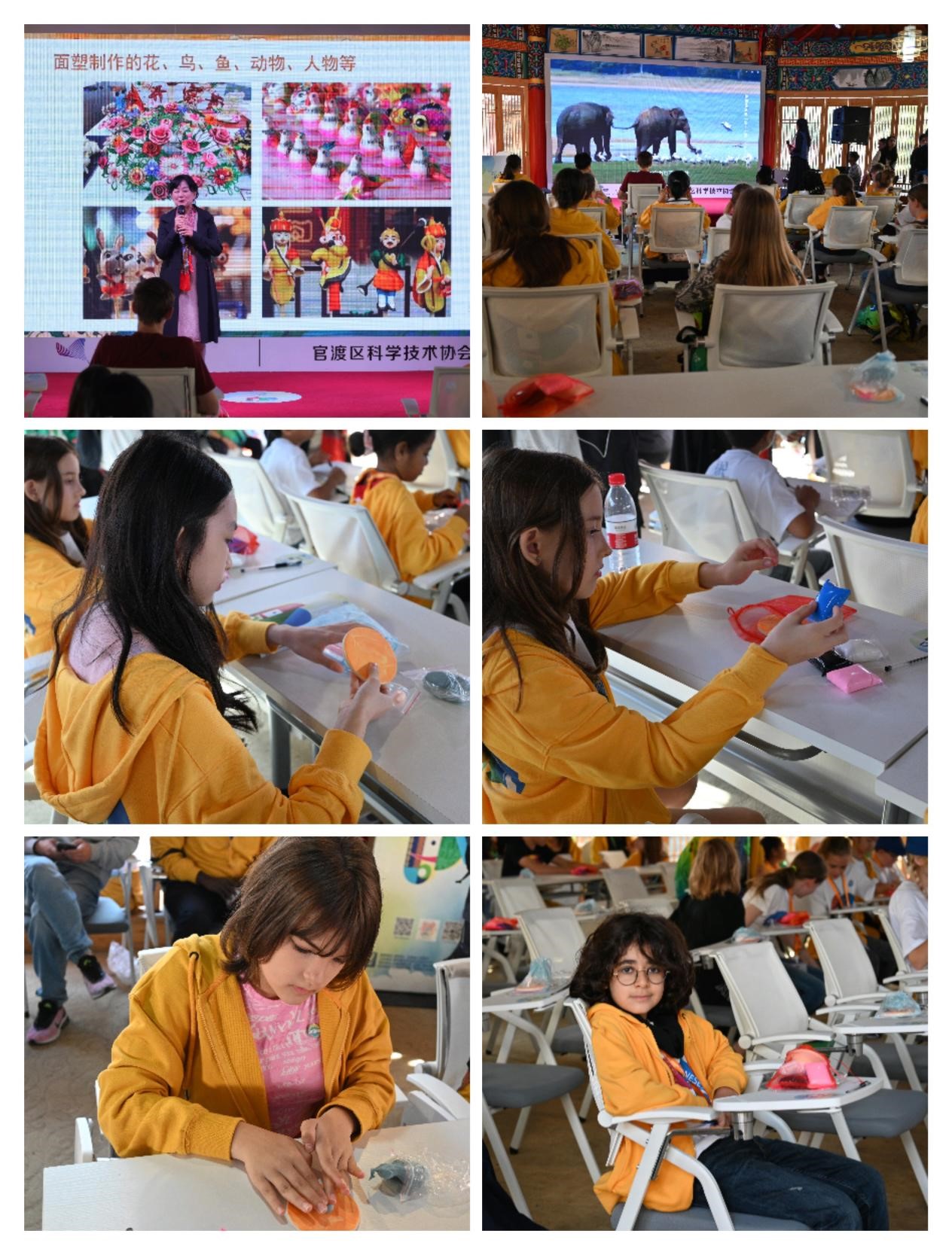 在滇派面塑馆,选手们看到了一件件栩栩如生的作品,无不深深感叹。在此,汉语桥世界小学生第四节快乐中文公开课欢快进行,讲解员向小学生选手们介绍了面塑的原材料与悠久的历史文化。在一段视频引入后,小选手们迫不及待、争先上手,做出了形态各异的面塑作品。