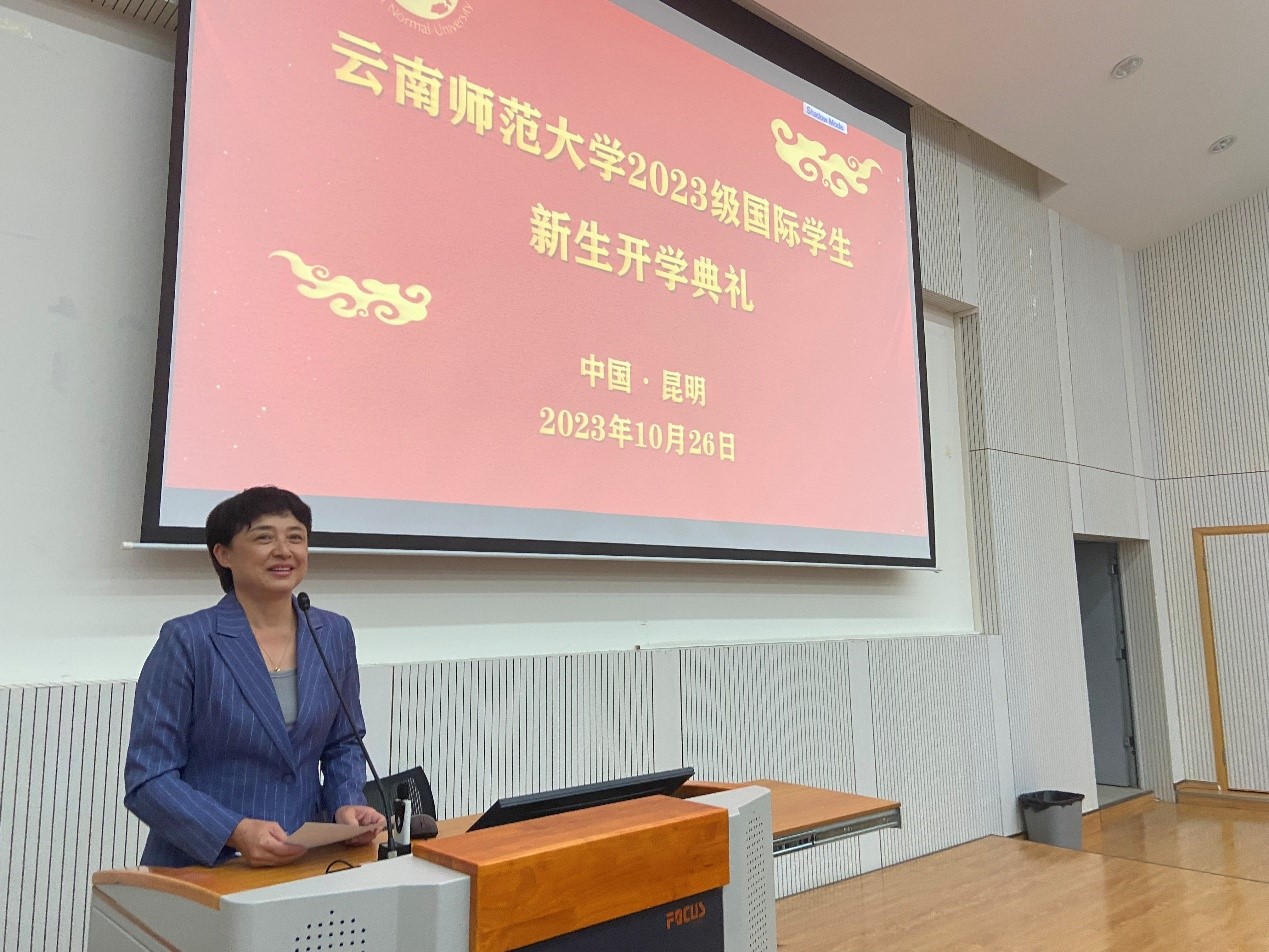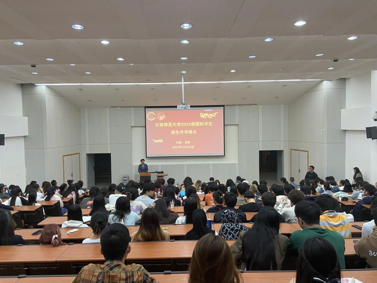 10月26日晚,永利官网2023级国际学生新生开学典礼在同析楼报告厅举行,来自25个国家的277名国际学生新生、云南华文学院领导、国际学生班主任及国际学生管理各部门工作人员参加了典礼。典礼由云南华文学院党委书记和雪莲主持。
