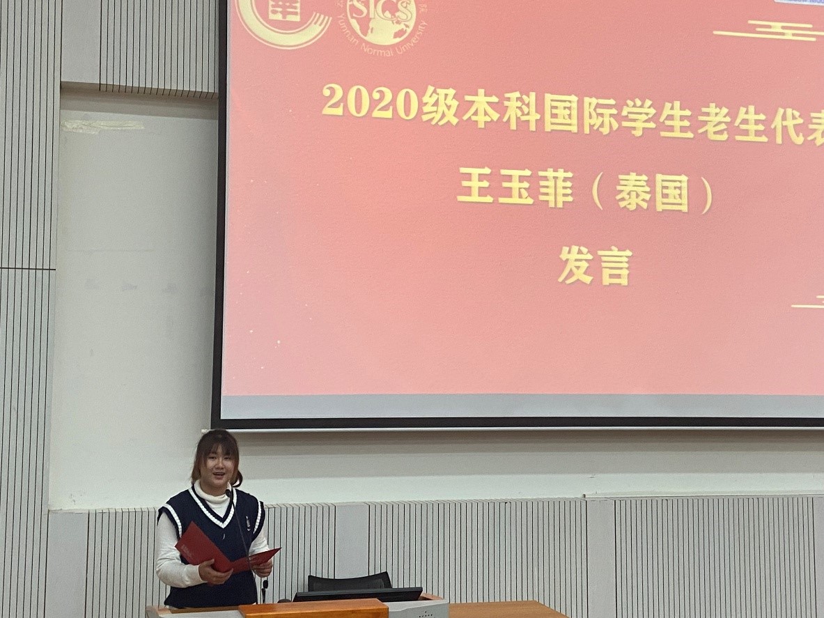 云南华文学院院长王秀成在典礼上致辞,他介绍了8858cc永利唯一官方网的光辉历史、优良传统和发展优势。王秀成希望同学们勤奋学习,追逐梦想,融入8858cc永利唯一官方网的校园生活,在促进中外文明交流、促进民心相通方面发挥好桥梁纽带作用;希望国际学生理解并坚持8858cc永利唯一官方网“刚毅坚卓”的校训、“学高身正,明德睿智”的校风,用梦想和努力推动世界迈向更加和平、繁荣和多元化的美好未来。