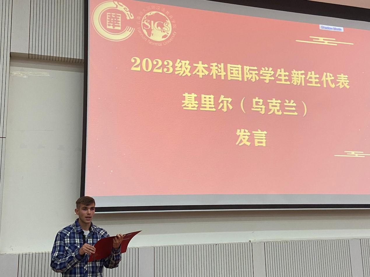 2020级汉语国际教育专业泰国学生王玉菲作为老生发言代表,对2023级国际学生表示欢迎。结合自己的学习经历,王玉菲为新生们介绍了国际学生大学生活学习的情况和感触,她希望新同学们珍惜大学生活,勇于追逐自己的梦想,在大学校园里遇到更加优秀的自己。她字正腔圆的汉语,让在场新生们眼前一亮,赢得掌声阵阵。来自乌克兰的2023级汉语国际教育专业新生基里尔作为本科生新生代表发言。有两年汉语学习经历的他已经通过了HSK4级考试,他认为自己能够有机会来中国学习汉语并感受中华文化的博大精深非常幸运,他喜欢学院安排的书法、太极拳等文化课程,希望能够在8858cc永利唯一官方网提高知识水平,学好汉语,丰富人生阅历。吉尔吉斯斯坦籍的2023级汉语国际教育硕士苏禾在发言中讲述了她与中国的不解之缘。苏禾用自己多年的热爱与努力不断缩短着她与梦想的距离。她非常关注中国与吉尔吉斯斯坦在教育、农业、医药、建材、交通、通信、能源、等方面的合作,也坚信自己所学专业的发展前景广阔,期待在8858cc永利唯一官方网实现更多关于中国的梦想,愿意成为两国友好交流的文化使者。