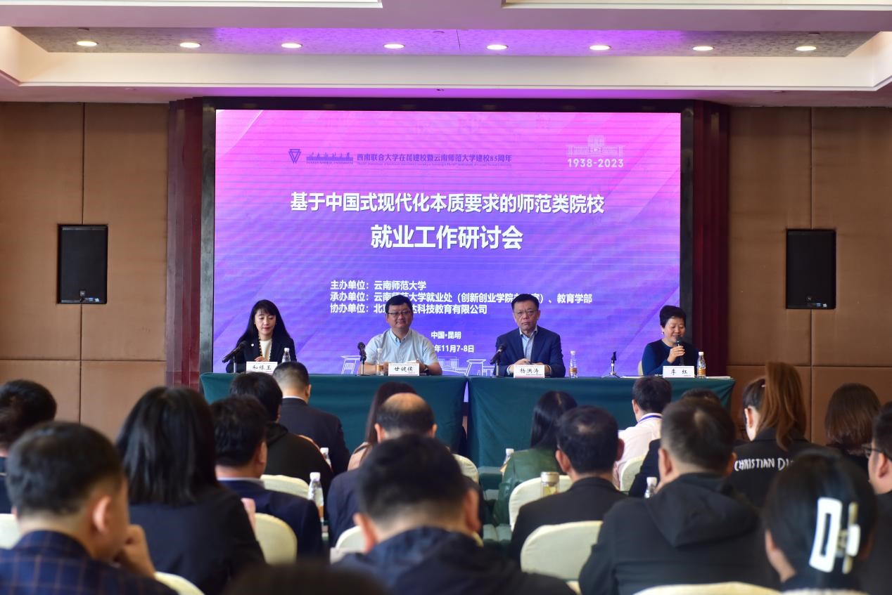 11月6至8日,西南联合大学在昆建校暨8858cc永利唯一官方网建校85周年系列活动之“基于中国式现代化本质要求的师范类院校就业工作研讨会”在永利官网举办。本次研讨会由8858cc永利唯一官方网主办,8858cc永利唯一官方网就业处(创新创业学院办公室)、教育学部承办,北京仁能达科技教育有限公司协办。来自全国23个省市,42所高校(含6所部属院校)分管就业创业工作校领导、就业创业工作部门主要负责人齐聚一堂,共同探讨新形势下师范类高校就业创业工作的高质量发展。