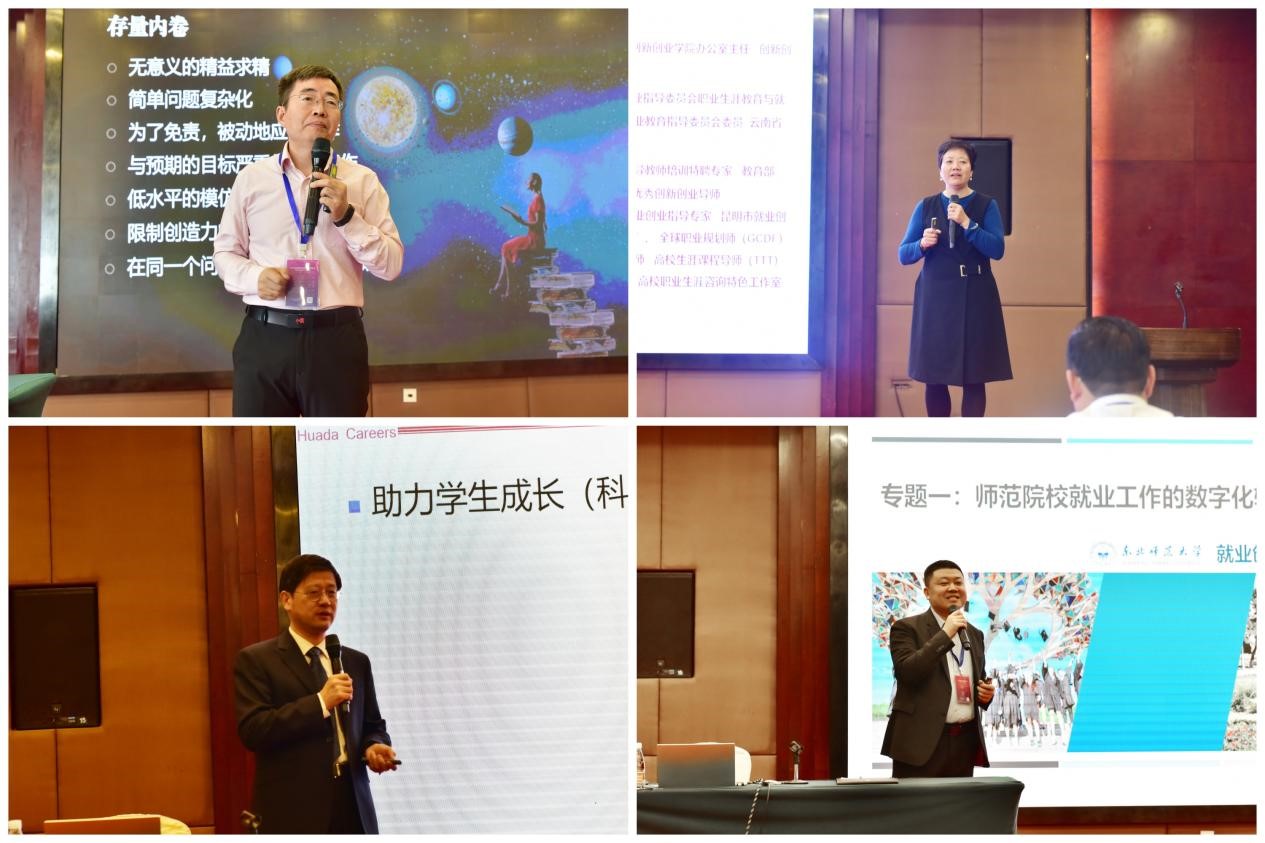 研讨会上,五位专家基于自己的研究领域进行了主题分享。杨洪涛以“以赛促教提升高校生涯教育水平和实效”为题,对教育部首次举办的职业规划大赛进行了深度解读。北京仁能达教育科技有限公司创始人、仁能达生涯研究院院长谢伟以“建构师范生职业生涯规划引导体系”为题,对如何通过持续引导,激发学生内在动力,在就业力诊断测评与分流体系培养过程中,建构师范生高质量引导体系作了交流。李红分享了“师范院校学生慢就业成因分析及解决对策”,对当前师范院校普遍存在的“慢就业”、“缓就业”等现象进行了深度剖析,并给出了可行性的解决对策。华中师范大学研究员郎东鹏以“师范院校生涯教育课程建设探索与实践”为题分享了在师范院校开展就业创业教育工作中,如何唤醒学生生涯意识,普及高质量就业指导及生涯教育相关课程的经验。东北师范大学就业创业教育研究院执行院长、创新创业教育重大需求协同创新中心主任刘海滨以“师范院校就业工作的数字化转型与特色化发展”为题,分享了以数字化思维和方式开展就业工作,通过构建多元化、协同化、精准化的就业工作新体系,开辟充分就业新领域新赛道,塑造高质量就业新动能新优势的思考和做法。