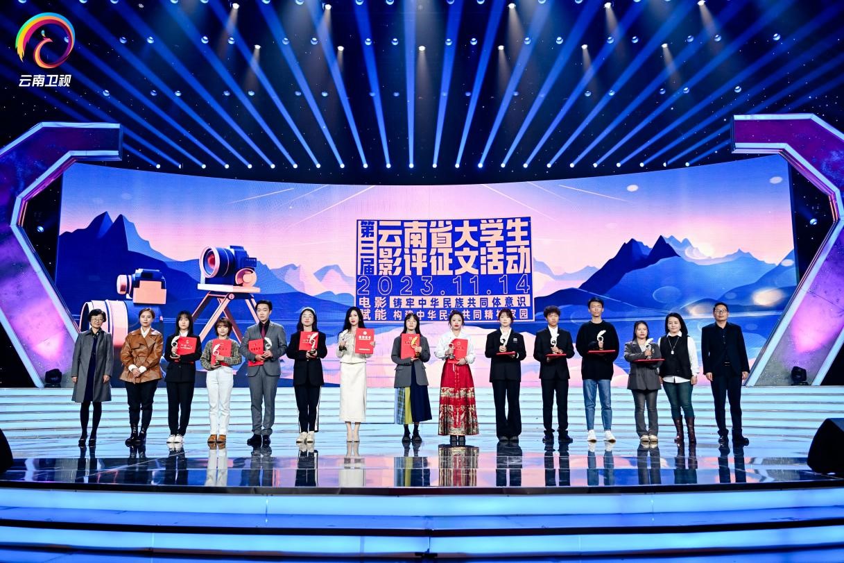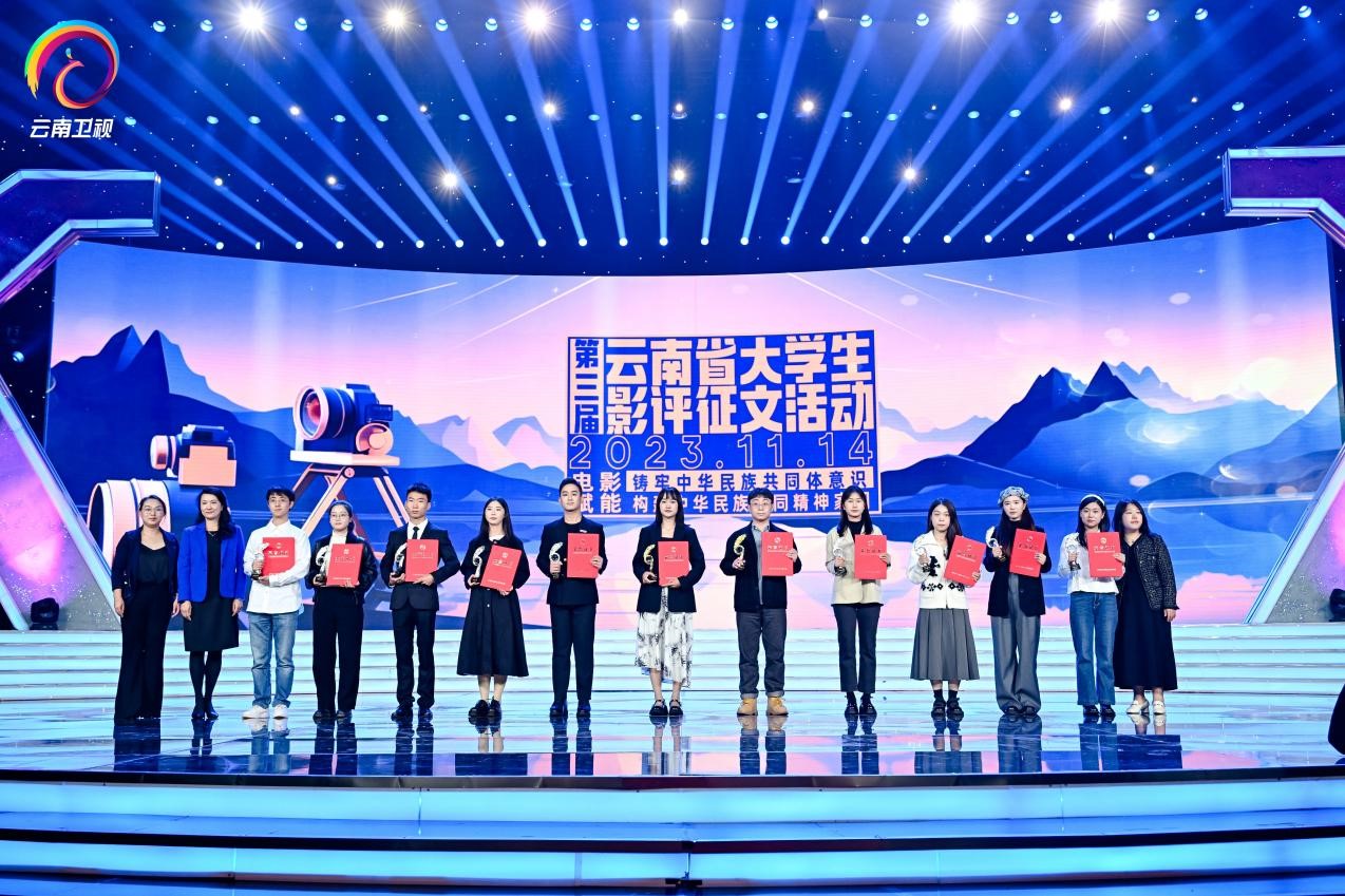 活动现场还进行了第三届云南省大学生影评征文颁奖。本次征文活动收到了85所院校投递的870篇作品,经评审委员会专家评审,永利官网传媒学院陈嘉雯、邱青青、周晓婷、王雨鑫4名同学获得本科生组优秀作品奖,张齐、谭辉、李淼3位老师获得优秀教师奖。