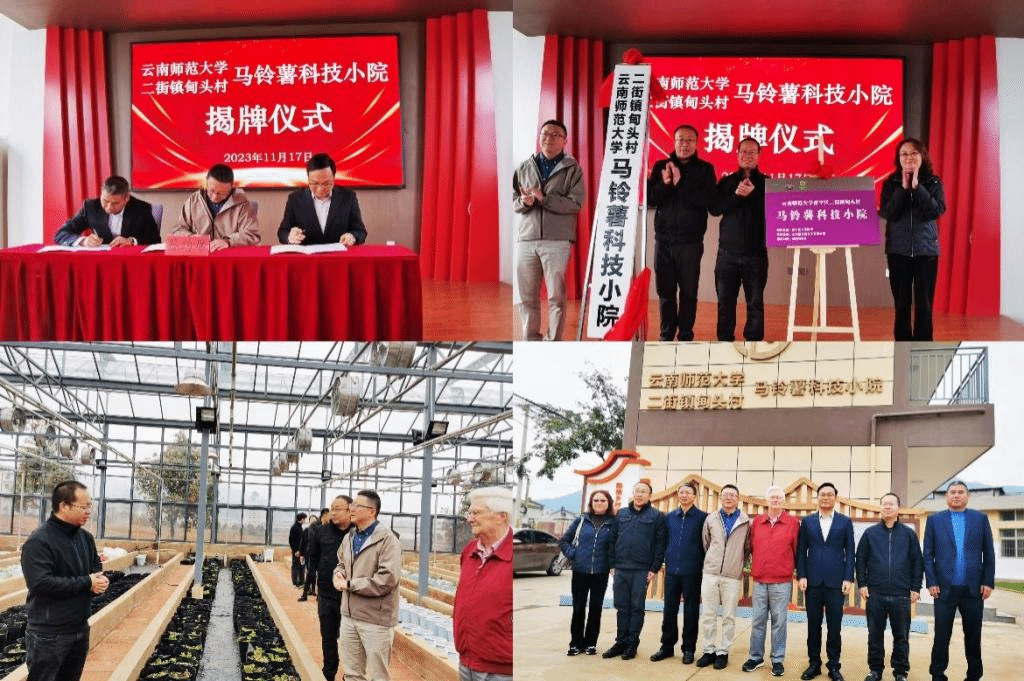 仪式上,永利官网马铃薯科学研究院、云南福贵磷化工有限公司及二街镇甸头村民委员会共同签署了三方合作框架协议。同时,还进行了甸头马铃薯科技小院、昆明市“春城产业导师”工作站及云南(昆明)尚轶马铃薯营养专家工作站揭牌。