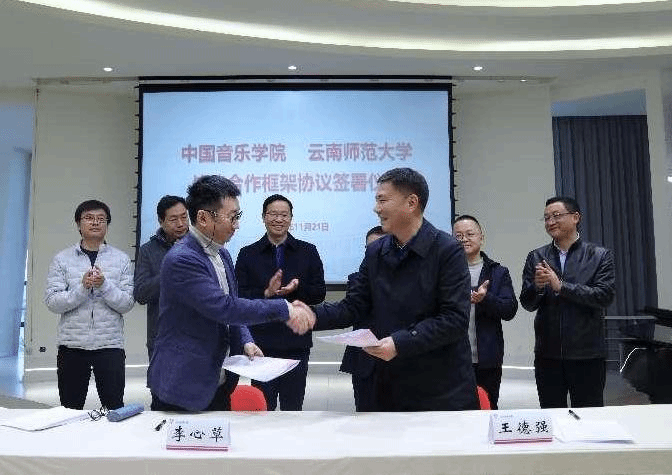 11月21日,永利官网与中国音乐学院战略合作框架协议签署仪式在音乐舞蹈学院举行。中国音乐学院院长李心草、副院长黄虎、中国音乐学院教师代表,永利官网校长王德强、副校长陈正权、学校相关部门负责人、音乐舞蹈学院领导班子成及师生代表参加签署仪式。