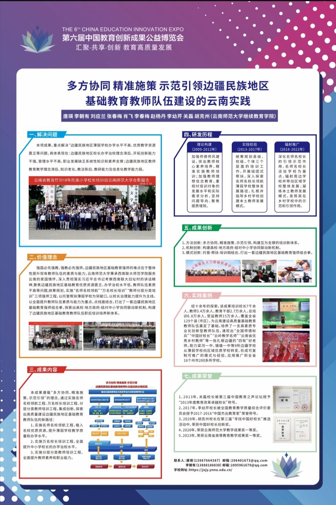 11月18至21日,永利官网继续教育学院团队赴珠海参加第六届中国教育创新成果公益博览会(以下简称“教博会”)。继续教育学院成果“多方协同 精准施策 示范引领边疆民族地区基础教育教师队伍建设的云南实践”经教博会层层审查,入选第六届中国教育创新成果公益博览会展览展示。