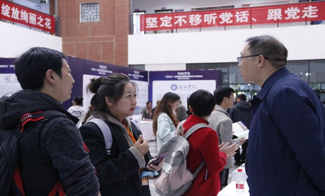 推进会后,在永利官网大学生活动中心,来自全省36所高校的部分校领导、就业工作负责人和123家民营企业的人力资源部负责人进行了面对面洽谈。洽谈活动还同步开展了招聘岗位直播,参会企业共提供就业岗位4600多个。
