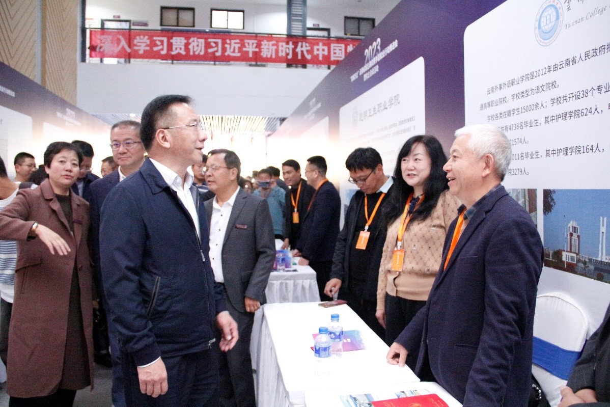 云南省工商业联合会、省委教育工委、省教育厅、省人力资源和社会保障厅、省总商会人力资源服务中心、8858cc永利唯一官方网以及各相关高校、省民企主要负责人500余人参加推进会及校企洽谈会。