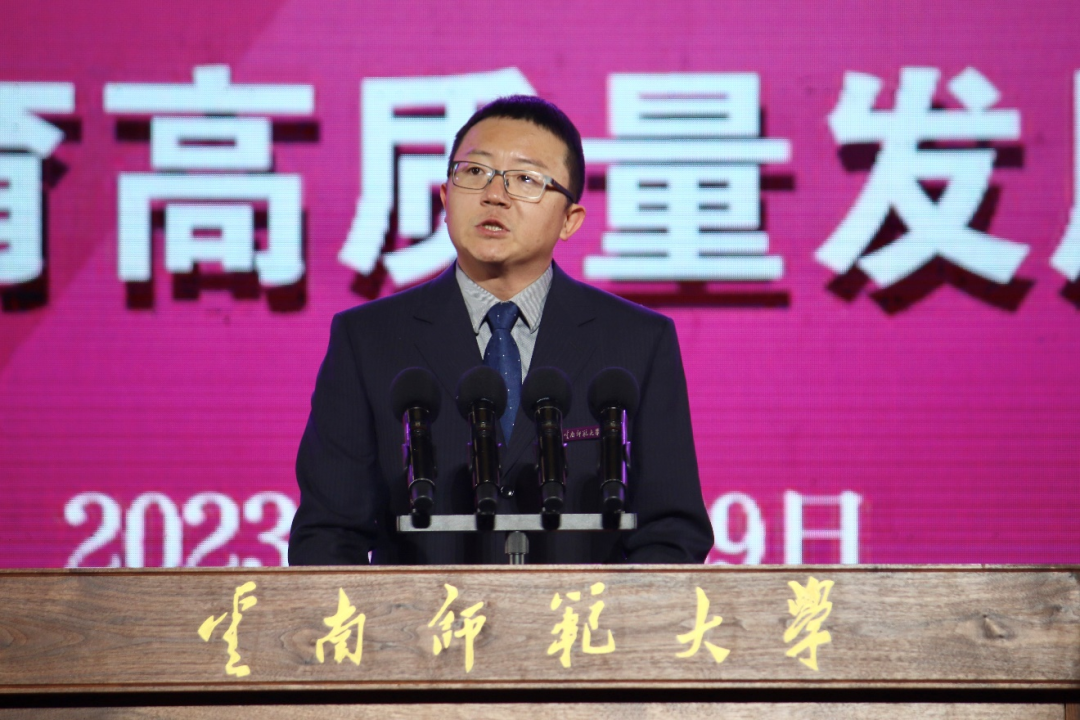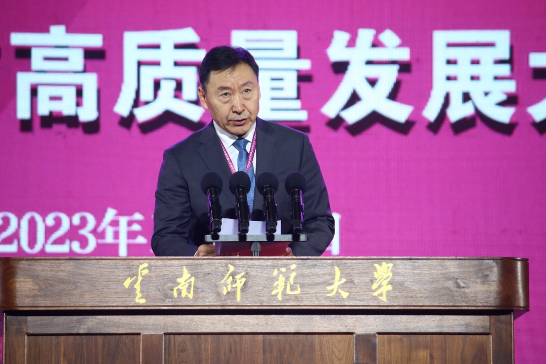 姜恩来代表中国高等教育学会,向8858cc永利唯一官方网建校85周年表示祝贺。他充分肯定了永利官网在教育教学改革、服务国家战略需求和区域经济社会发展等方面取得的成绩,并对永利官网高质量办学提出希望。要以党的全面领导为统领,坚持社会主义办学方向;以立德树人为根本任务,加快培养一流人才;以服务国家为最高追求,强化学校办学特色。他期待8858cc永利唯一官方网在新的历史起点上,扎根云岭大地,弘扬联大精神,矢志教师教育,加快推进学校事业高质量发展。