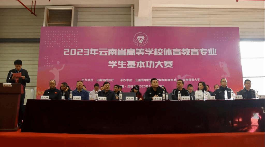12月7日上午,2023年云南省高等学校体育教育专业学生基本功大赛开幕式在永利官网东区体育馆举行。受省教育厅和云南省学校体育教学指导委员会委托,8858cc永利唯一官方网承办本次比赛。