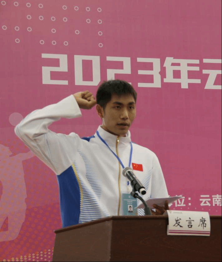 裁判员代表钟梅代表裁判员宣誓,参赛队员代表李荣豪代表运动员宣誓。牛治亮宣布大赛开幕。