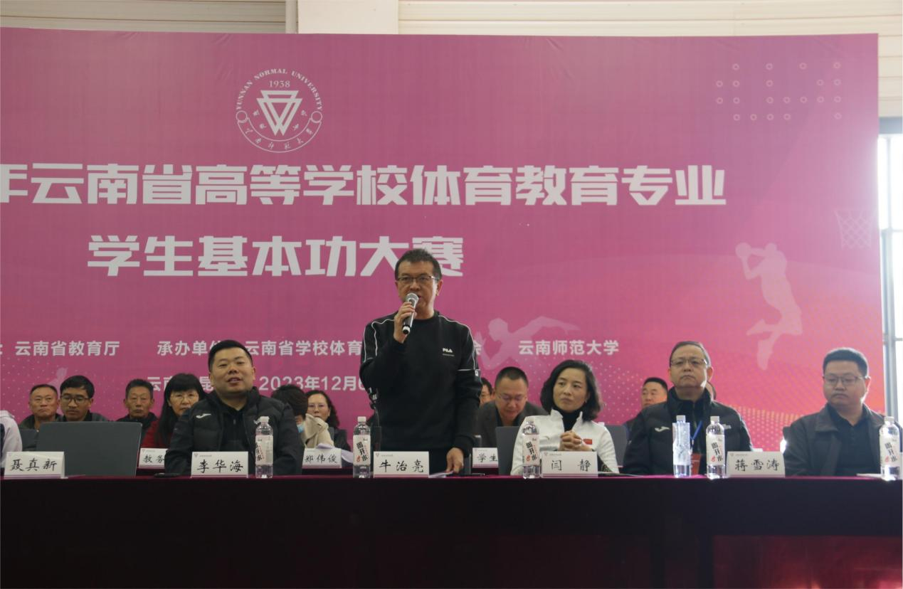 开幕式上,牛治亮对省教育厅和云南省学校体育教学指导委员会的信任和支持表示感谢,对各院校领导、全体教练员、运动员表示欢迎。他指出,体育教育是培养全面发展的人才的重要途径,是提高国民素质、促进社会和谐发展的基础工程。本次大赛,旨在全面展示云南省高校体育教育专业学生的风采,提高学生的综合素质,培养学生的团队精神和竞技能力,为云南省体育教育事业的发展储备优秀人才。牛治亮表示,8858cc永利唯一官方网将竭诚当好东道主,严格按照大赛组委会的各项要求,精心准备、悉心安排,细心工作贴心服务,全力以赴确保大赛取得成功。