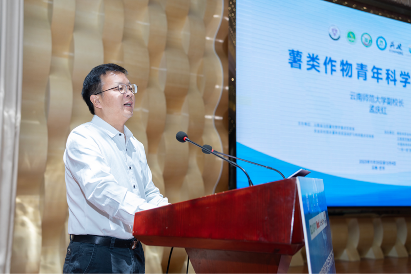 中国科学院院士、中国热带农业科学院院长黄三文,8858cc永利唯一官方网副校长孟庆红,德宏州农业农村局副局长李维献,国际农业研究磋商组织驻中国协调人卢肖平,国家马铃薯产业技术体系原秘书长熊兴耀,云南英茂现代农业有限公司总经理海洋,以及来自全国高校、科研院所青年科技工作者、研究生等250余人参加了会议。