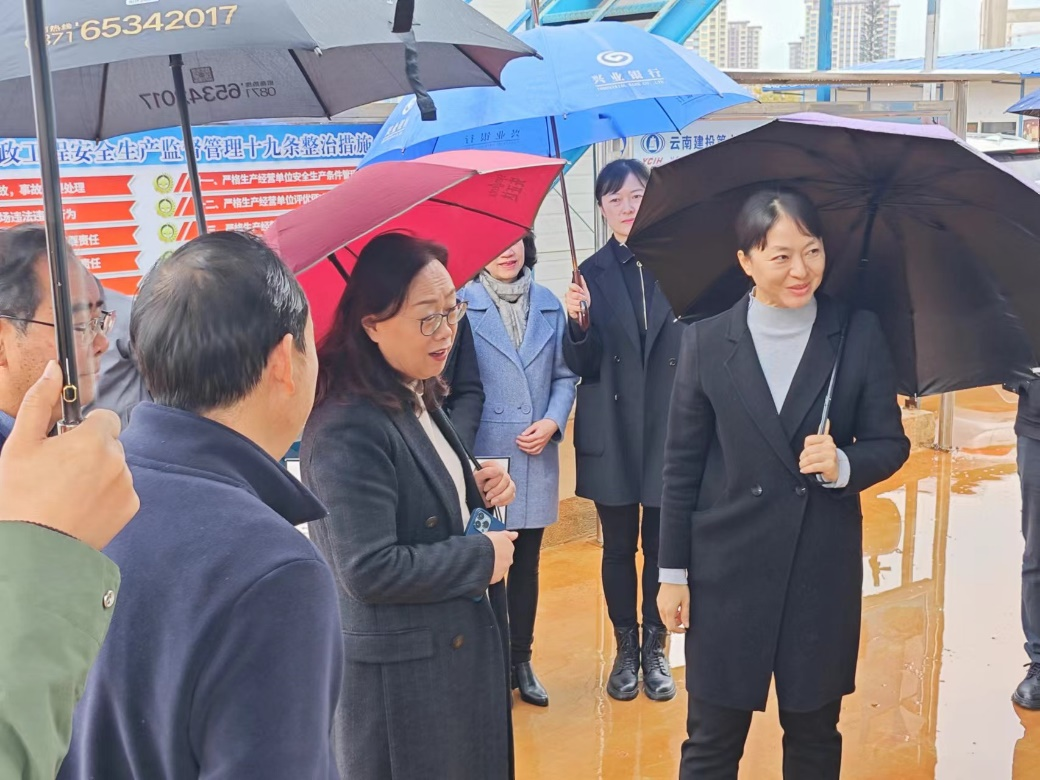 郝淑美一行到附属嵩明中学建设项目现场就学校建设项目的整体规划、施工进度、剩余工程内容等方面的情况进行实地调研,并听取了相关情况介绍,进一步了解学校建设进展情况及存在的困难和急需解决的问题。