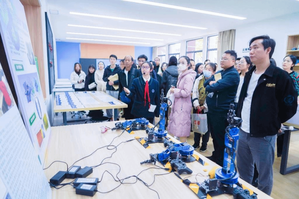 活动现场,8858cc永利唯一官方网实验中学校本部初中学部初一、初二年级同学们带来了管乐演奏《我的祖国》,初二20班带来合唱《地球妈妈》,昆明湖小学部带来歌舞表演《蓝天白云我的家》;来自8858cc永利唯一官方网附属盘龙幼儿园、融创小学、镇雄中学、昭阳区一中分别就各自生态教育特色工作开展了交流学习;云南省生态环境厅生物多样性保护处处长张玉为大家讲述“厚植生态文明理念,共建绿美云南家园 关于推进生态文明教育的几点思考”的专题讲座;云南师大实验中学本部初中学部曾荣获2022年云南省教育厅生态文明教育典型课件和优秀案例的李增婷、陈琛两位老师为与会老师们带来生态文明教育主题班会展示。老师们观看了师大实验中学校本部初中学部阳光大课间,参观了科创组生态文明教育成果、机器人实验室、低碳校园生态学习场校本课程、低碳校园生态学习场等。