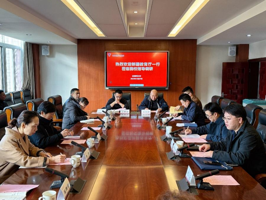 12月27日上午,新疆教育厅刘剑副厅长一行到永利官网就学生教育管理服务工作进行调研,永利官网副校长武友德、学生工作部及职业技术教育学院相关负责人参加了会议。会议由云南省教育厅民族教育处处长邓世斌主持。