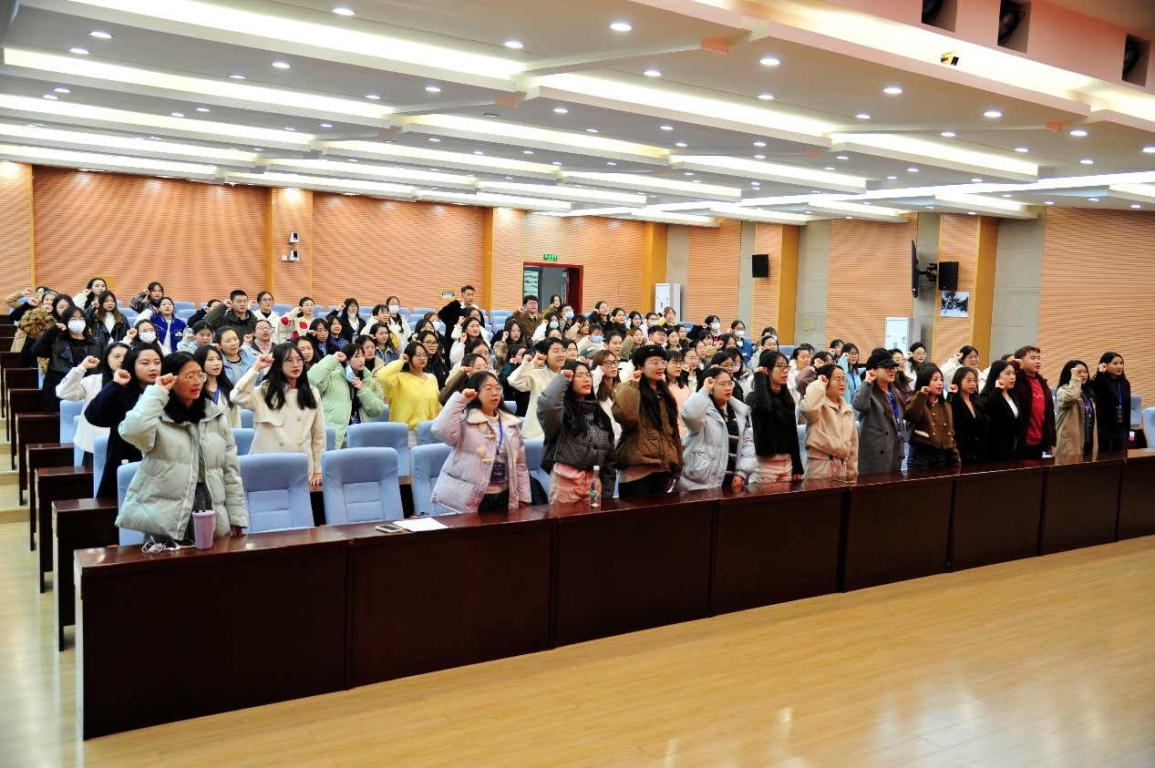 随后,由师衍瑾、崔梦瑶领誓,全体学员进行了志愿者宣誓。