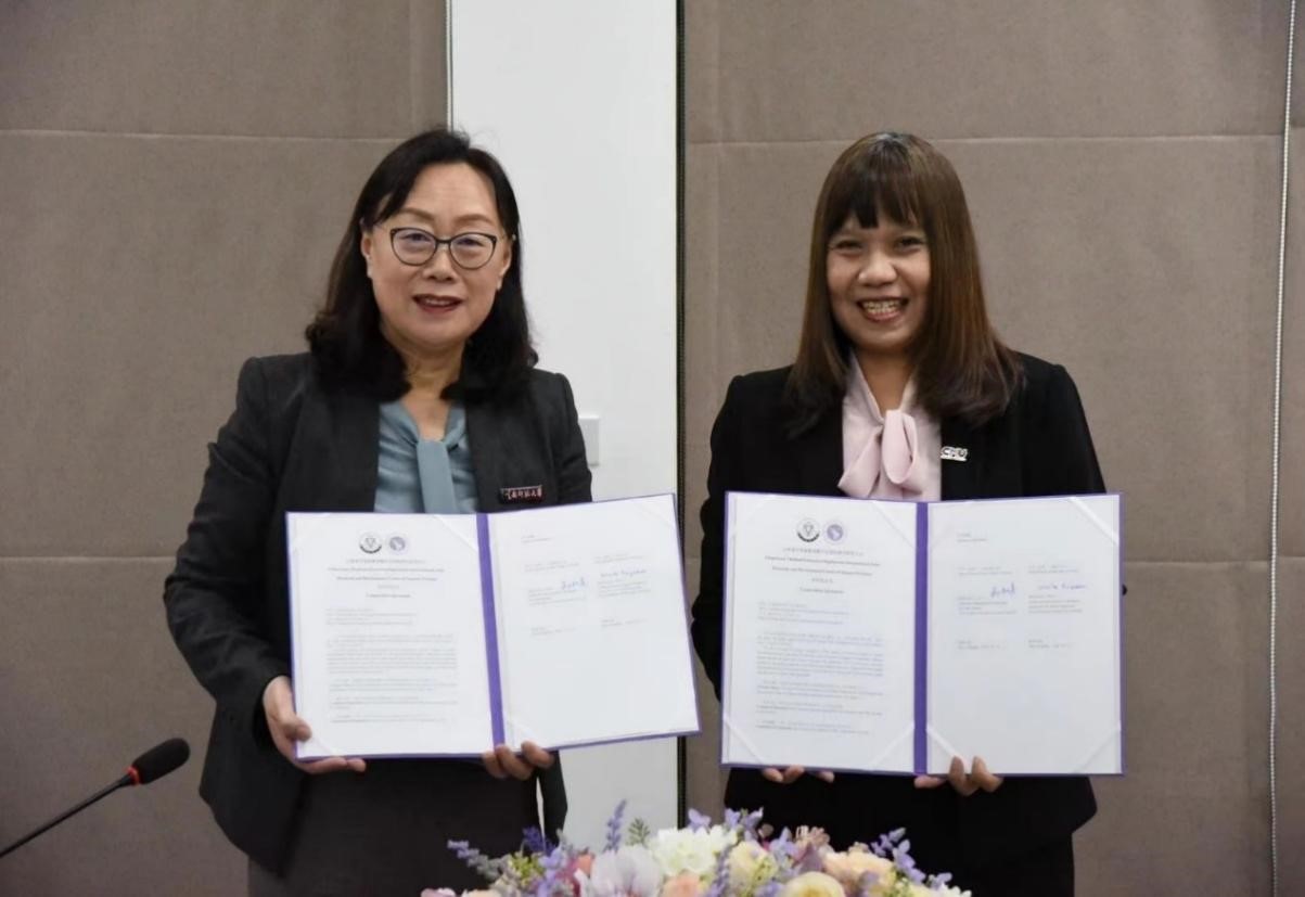 在泰国清迈期间,代表团与清迈大学数字创新国际学院、教学创新中心进行了交流座谈,清迈大学副校长Winita Punyodom等参与座谈。双方签订了项目合作协议书,并就两校进一步加强中泰双语教育数字化师资、硕士研究生培育、科技合作等方面进行了深入交流。