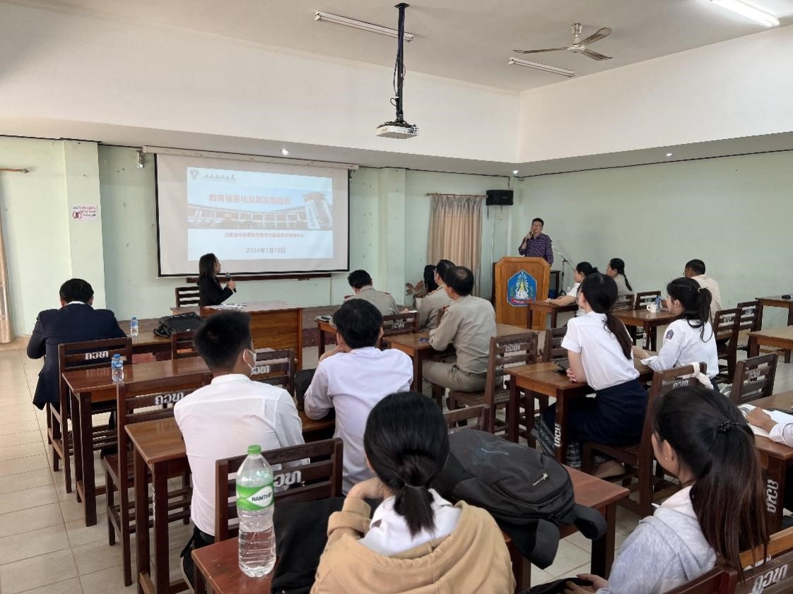 代表团到项目合作方老挝国立大学自然科学学院开展现场调研。同时,为了加强老方教育数字化队伍建设,代表团在老挝国立大学自然科学学院开展了教育信息化专题培训,参与培训的教师、学生共有40余人,取得较好效果。