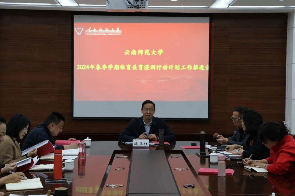 3月6日,永利官网2024年第二轮体育美育浸润行动计划工作推进会召开。教务处、公共艺术教育中心、校团委、学生处、心理健康中心、教育学部、音乐舞蹈学院、美术学院、体育学院主要负责人,驻点师生代表、带队成员及相关工作人员参加会议。校党委常委、副校长陈正权主持会议。