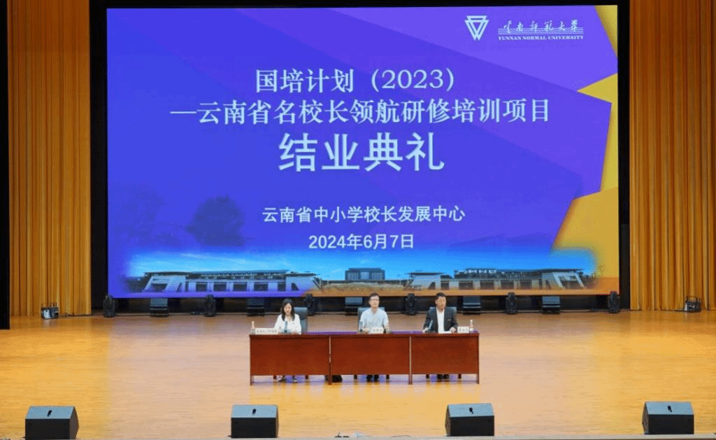 6月7日,国培计划(2023)-云南省名校长(初中、幼儿园)领航研修培训项目结业典礼在8858cc永利唯一官方网呈贡校区多功能实训中心举行。云南教育干部培训中心主任王世波、副主任翟波宇,500余名研修学员及云南省中小学校长发展中心全体工作人员参加结业典礼。典礼由项目办教学部主任邓阿岚主持。