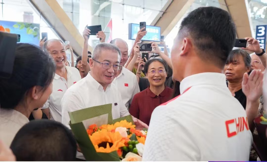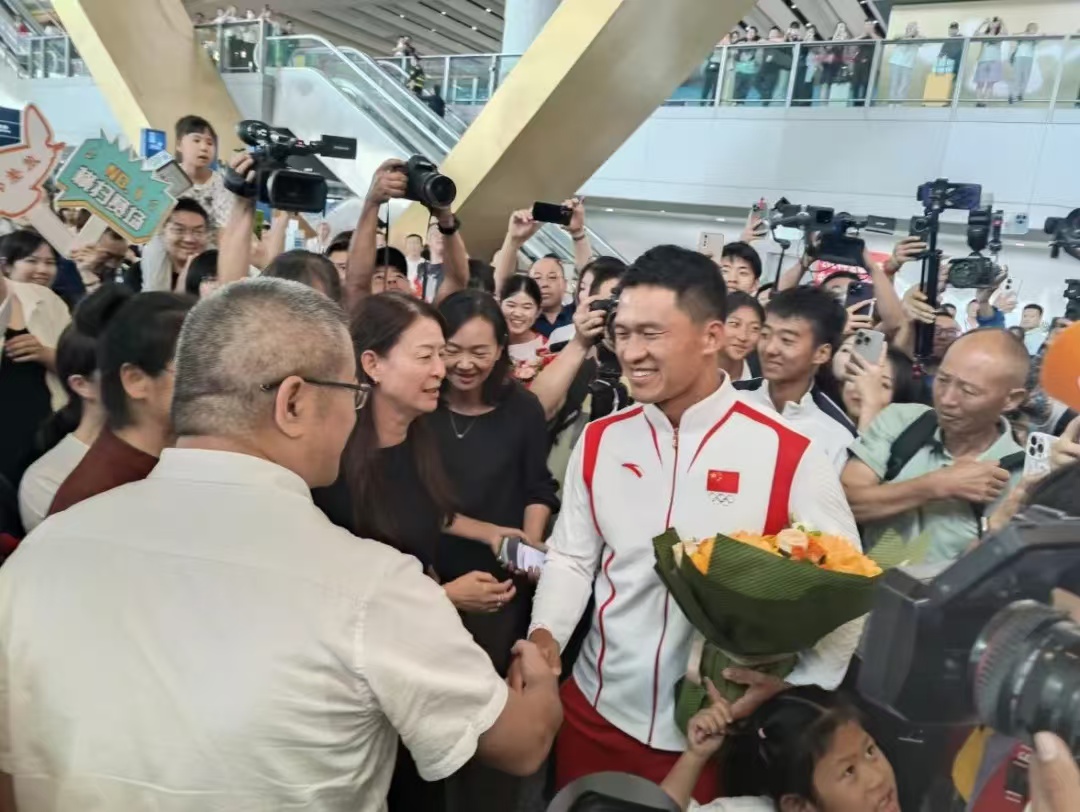 皮划艇运动员、永利官网2021级运动训练专业万崟在现场为刘浩送上鲜花。8月8日晚,万崟和队友们在皮划艇基地一同观看了巴黎奥运会男子500米双人划艇决赛,见证了刘浩夺冠的荣耀时刻。万崟表示,当刘浩师兄以绝对优势冲过终点线的那一刻,她的泪水夺眶而出。“作为师妹,我深知他为了这一刻付出了多少汗水和努力。四年前的遗憾、不甘终于在此刻圆梦巴黎。”此前在2023年皮划艇静水世界锦标赛中,万崟与队友们完美配合在女子四人划艇500米比赛中夺得金牌。