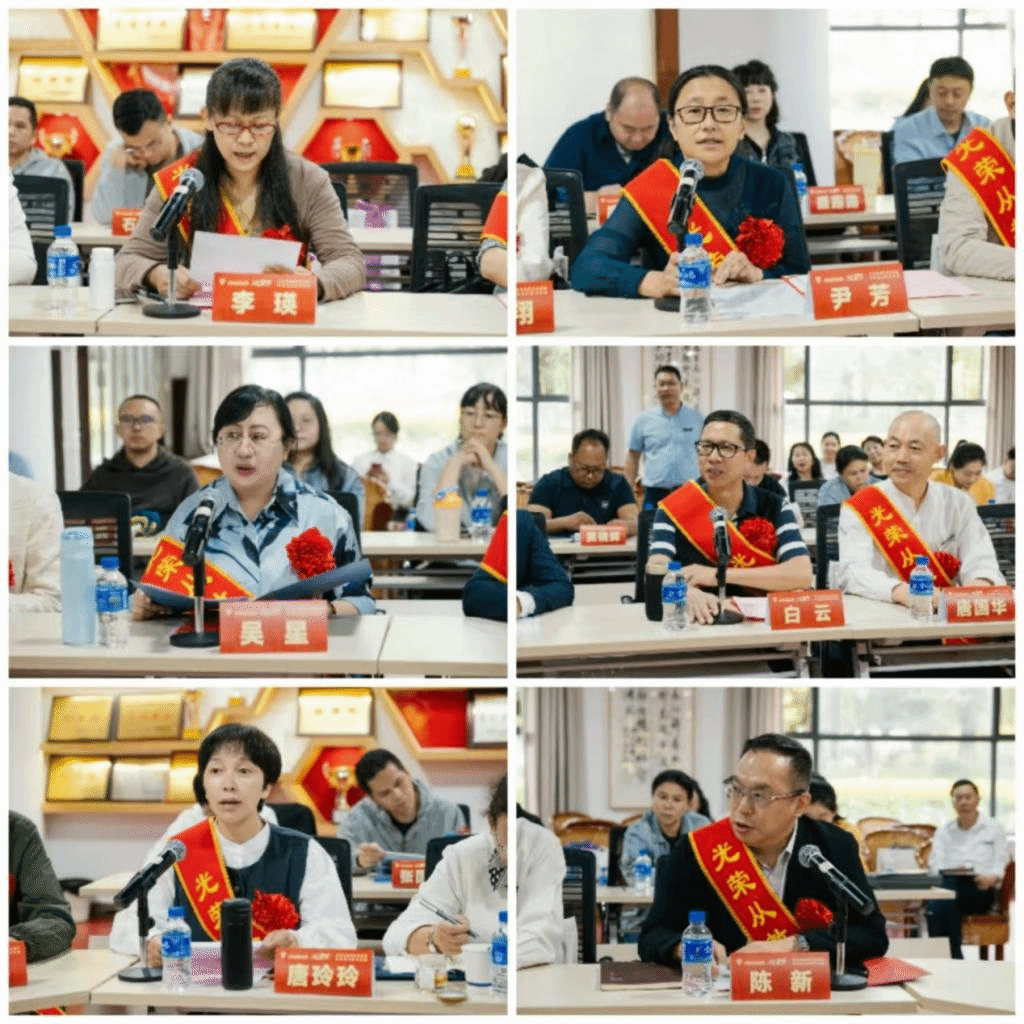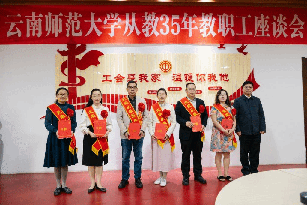 会议为光荣从教35周年教职工颁发了荣誉证书。李瑛、尹芳、吴星、白云、唐玲玲、陈新等教职工代表作了交流发言。