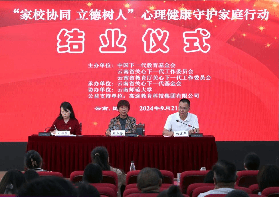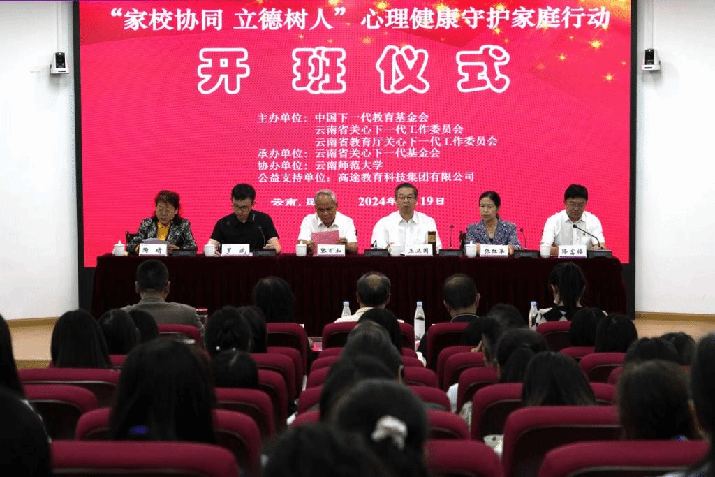 9月19日上午,开班仪式在一二·一西南联大校区举行。云南省关工委张百如主任,中国关心下一代工作委员会副主任、教育部关心下一代工作委员会副主任、中国下一代教育基金会理事长王卫国,云南省关工委副主任、思想道德委员会主任张红苹,云南省教育厅关工委主任陶晴,8858cc永利唯一官方网党委副书记降富楼,北京高途教育科技集团联合创始人罗斌出席开班仪式。高途家庭教育研究院、云南省下一代教育基金会、云南省教育厅关工委、8858cc永利唯一官方网继续教育学院负责人、相关项目团队参加开班仪式。开班仪式由陶晴主持。全省16个州市近350名中学心理健康教育教师、专兼职家庭教育教师和各州市分管家庭教育工作者,以线下线上相结合的方式参加本次培训。