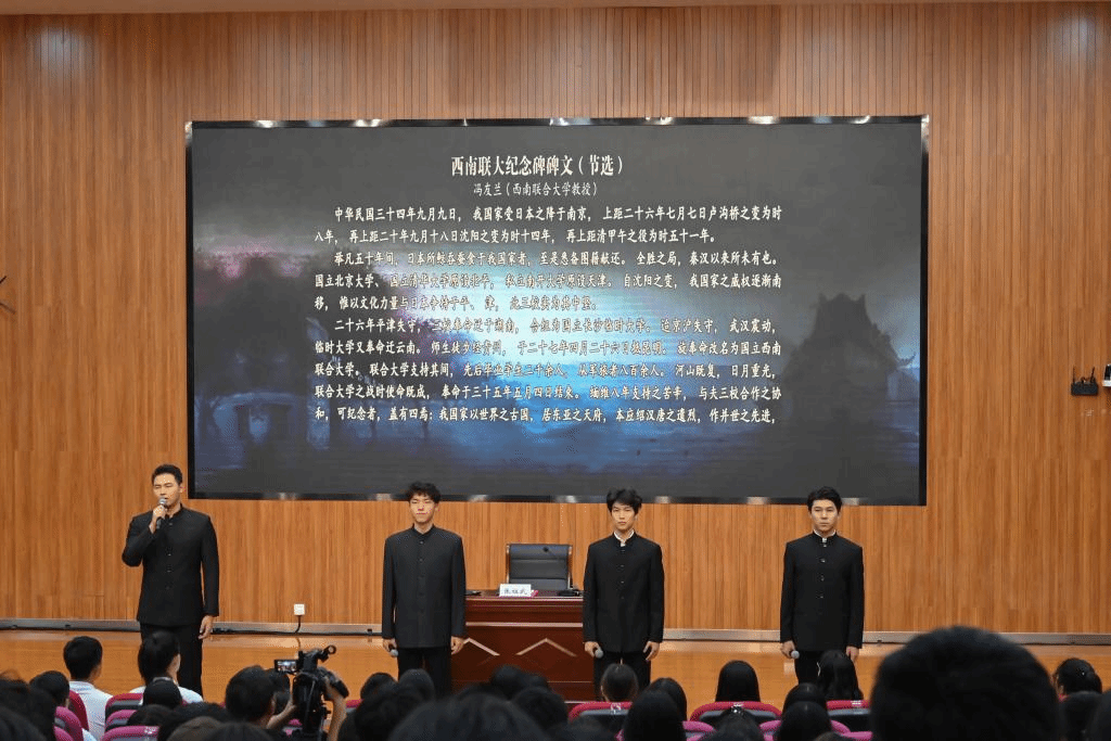 “开学第一课”以“主会场+分会场、线下+线上”全程直播的方式进行。主会场设在呈贡校区汇学楼报告厅,分会场设在呈贡校区、西南联大校区各教学楼多媒体教室。授课开始前,永利官网传媒学院学生朗诵了《西南联大纪念碑碑文(节选)》。