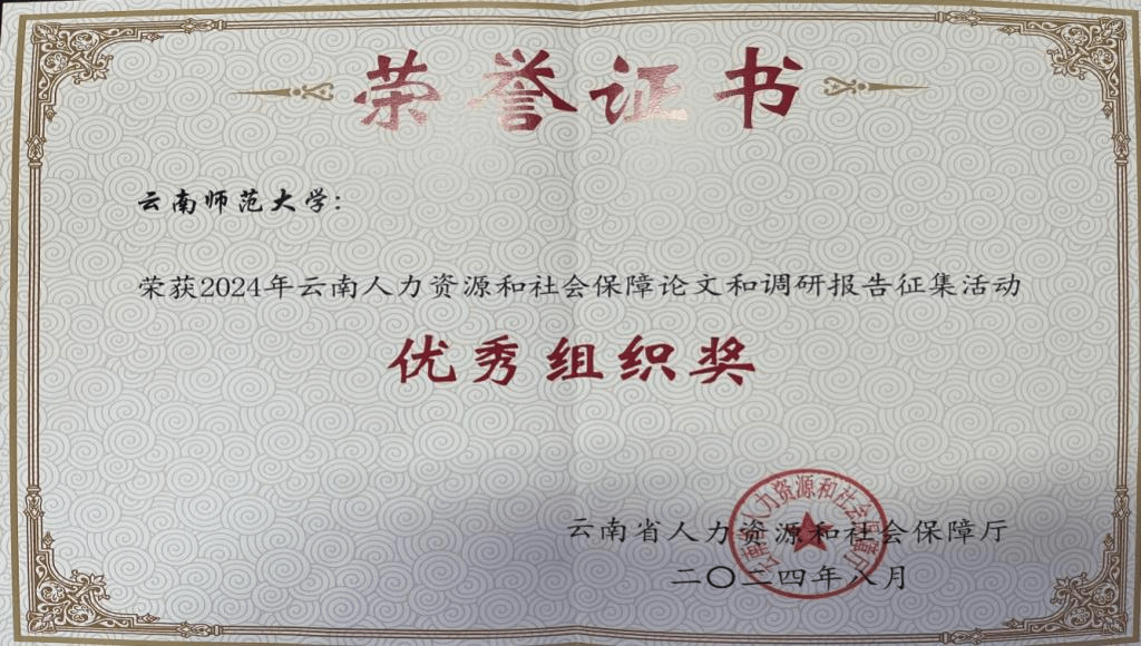 为进一步发挥科研力量服务科学决策、推动人社事业高质量发展的支撑引领作用,云南省人力资源和社会保障厅面向全省人力资源社会保障理论和实践工作者开展2024年云南人力资源和社会保障论文和调研报告征集活动。学校高度重视、积极动员,认真组织相关人员撰文参赛。永利官网师生参赛的论文选题紧扣“3815”战略发展目标,围绕支撑中国式现代化、加强人力资源开发利用等领域,聚焦就业创业、社会保障、人事人才、劳动关系、人力资源等堵点和难点,为推动全省人社事业高质量发展提供理论支撑和决策参考。