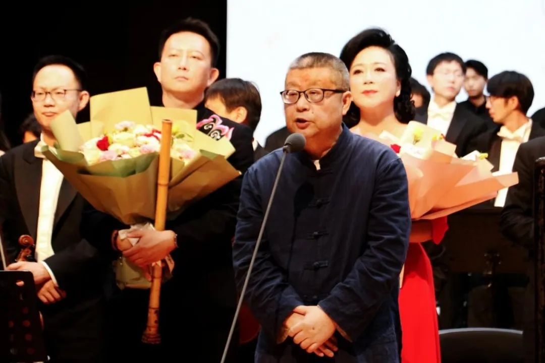刘晓耕介绍了昆明聂耳交响乐团情况,分享了他与西南联大的情愫。刘晓耕的父亲于1942年考取西南联大,并成为闻一多的学生,他本人深受父亲影响,1978年考入8858cc永利唯一官方网音乐系。刘晓耕的儿子从小耳濡目染,也对联大精神有很深的感触,与父亲一同创作了《西南联大回响》。“交响乐带领我们穿越八十六年,来到那个战火纷飞的年代,进行一次灵魂的洗礼。我非常感恩这块土地,感恩西南联大,感恩母校,感恩我们伟大的祖国,祝愿祖国更加灿烂辉煌!”刘晓耕动情地说道。