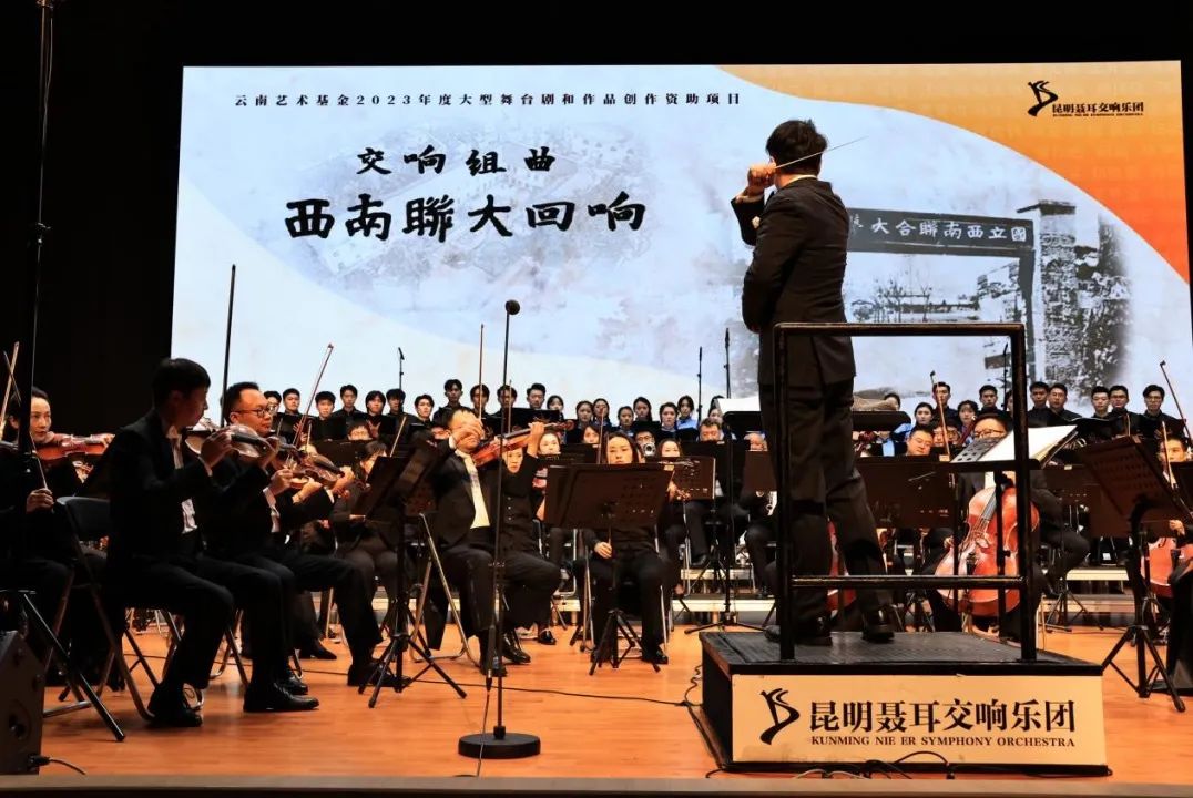 交响组曲《西南联大回响》由昆明聂耳交响乐团委约云南籍作曲家刘晓耕、刘晔父子共同精心创作,以十个震撼人心的乐章,回溯了西南联大光辉而又坚韧的历史,引领观众一同聆听西南联大跨越时空的回响。