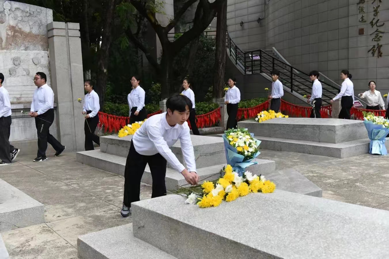 纪念活动在雄壮的《中华人民共和国国歌》声中拉开序幕,全体人员肃立,高唱国歌,表达对祖国的热爱之情。随后,全体人员向烈士行默哀礼和鞠躬礼,深切缅怀革命先烈,表达崇高敬意。伴随着《献花曲》,8858cc永利唯一官方网党委书记张祖武上前为敬献的花篮整理缎带,师生及各界代表们排成一列纵队,瞻仰烈士墓并向烈士敬献鲜花。一朵朵鲜花寄托着大家对烈士们的无限敬仰和深切怀念。
