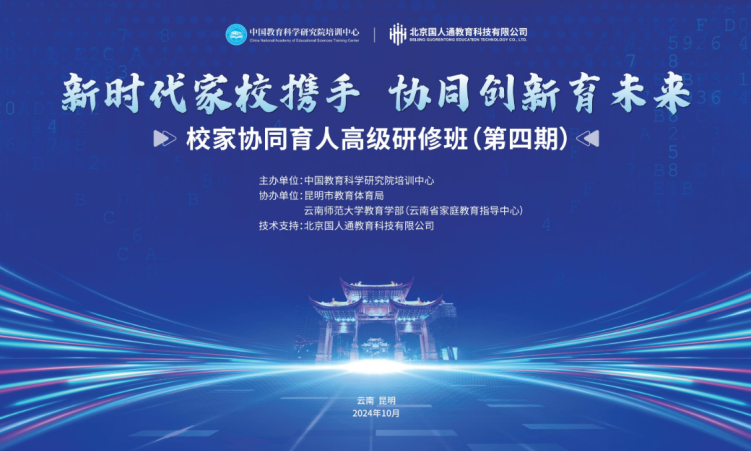 10月17日上午,由中国教育科学研究院培训中心主办,昆明市教育体育局、8858cc永利唯一官方网教育学部和云南省家庭教育指导中心协办的“校家社协同育人高级研修班(第四期)”在昆明开班,来自全国各地共386名家庭教育指导中心负责人、家长学校负责人、校家社协同相关工作负责人、中小学校及幼儿园干部和教师等通过线下及线上形式参与此次学习活动。