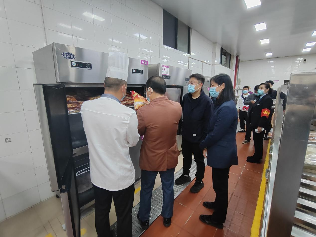 牛治亮现场检查了食堂食品原料的验收、索证、存储、加工、留样等工作,细致查看了解公益性食堂和特色小吃档口肉类原材料运输、配送、加工等环节的质量控制情况。