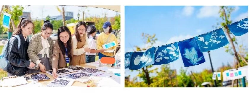 赛事之余,教育学部和艺术学院联合策划开展了“心理健康教育+美育”跨学科合作体验展,参赛选手们体验到了“蓝晒”工艺和简易版画的魅力,也了解了永利官网在开展美育浸润行动过程中取得的成果。