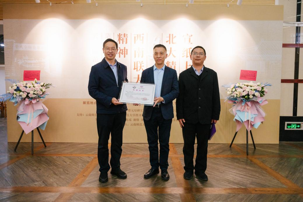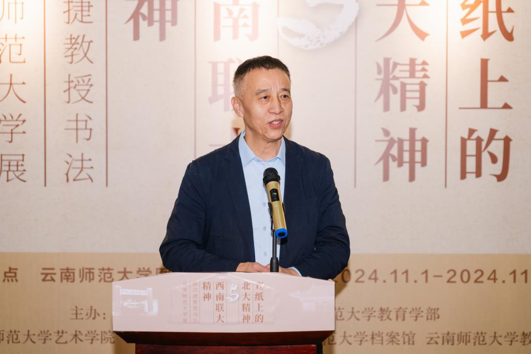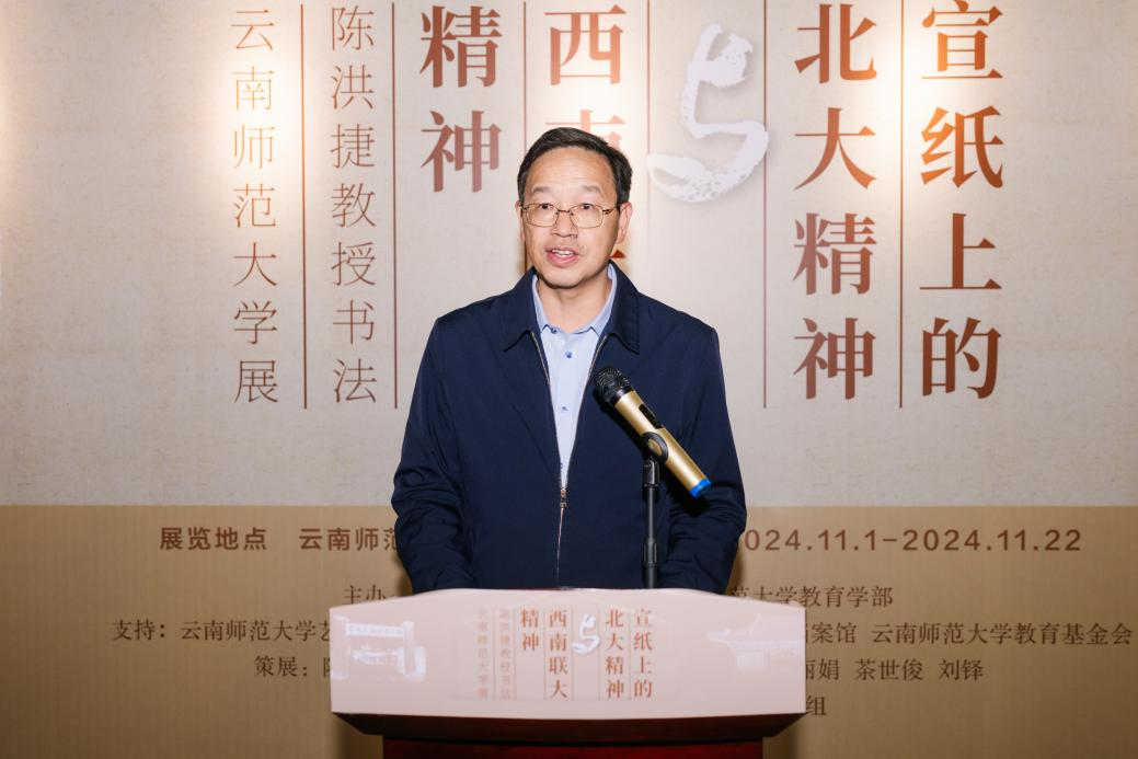 在西南联合大学在昆建校暨8858cc永利唯一官方网建校86周年之际,11月1日由北京大学蔡元培研究会和8858cc永利唯一官方网教育学部主办的“宣纸上的北大精神与西南联大精神”陈洪捷教授书法8858cc永利唯一官方网展在呈贡校区图书馆开幕。北京大学博雅教授、《北京大学教育评论》主编陈洪捷,8858cc永利唯一官方网副校长陈正权出席开幕式,学校相关单位负责人及师生代表参加开幕式。开幕式由教育学部党委书记禹紫灵主持。