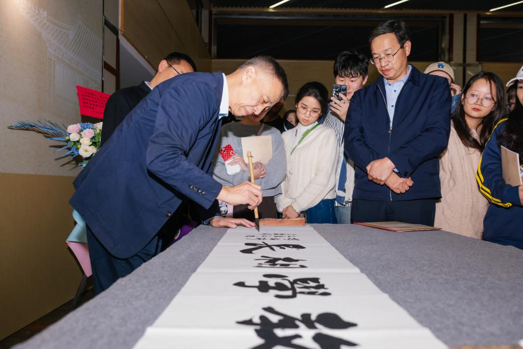 活动期间,陈洪捷现场挥毫泼墨,展示书法技艺。