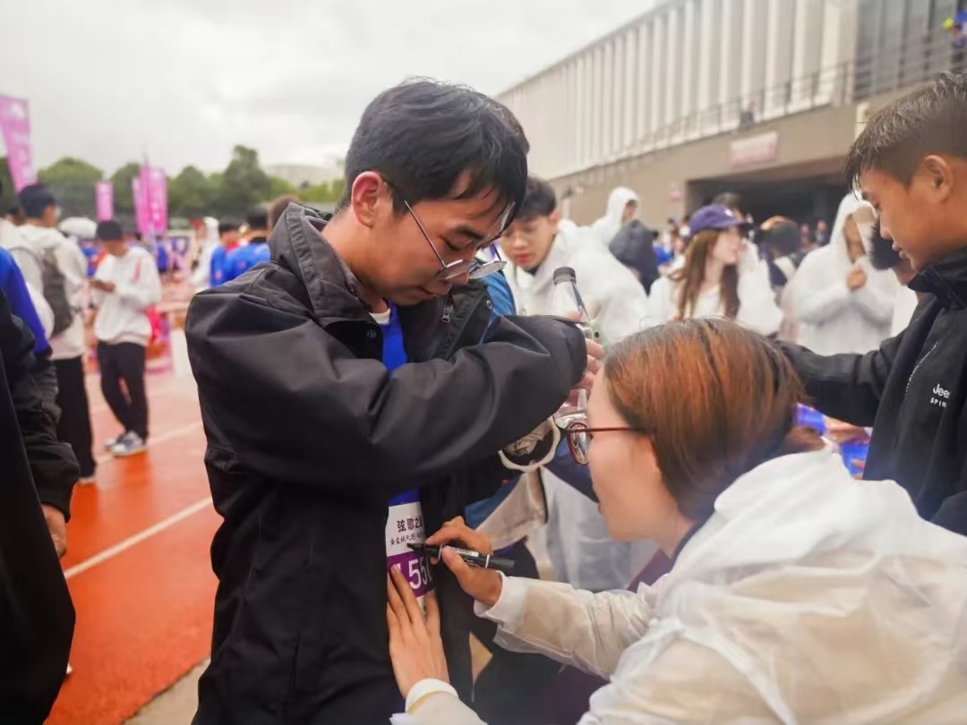 2010级云师校友陈会会表示:“了解到母校举办这次活动,我非常开心,当即决定前来参加。虽然自己平常也有跑步的习惯,但这次校园跑给我的体验很独特。学校贴心为选手们准备了雨衣、姜汤和定胜糕,让我们感受到了来自母校的温暖与幸福。在86周年校庆日之际,我们在这里,通过运动的方式向母校送上最真挚的祝福。”