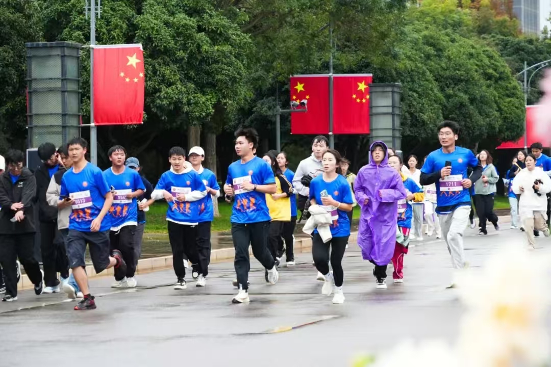 此时天空中下着小雨,但运动员们精神焕发、信心满满,大家在雨中热情奔跑,展现了新时代青年的活力与风采。“今天我的心情无比激动。这已经是我第二次参加校园跑活动了。虽然跑步时下着小雨,气温也比较低,但学校贴心地为我们准备了很多,让我们能更好地享受跑步的过程。”第一个冲线的同学王庭辉激动地说。