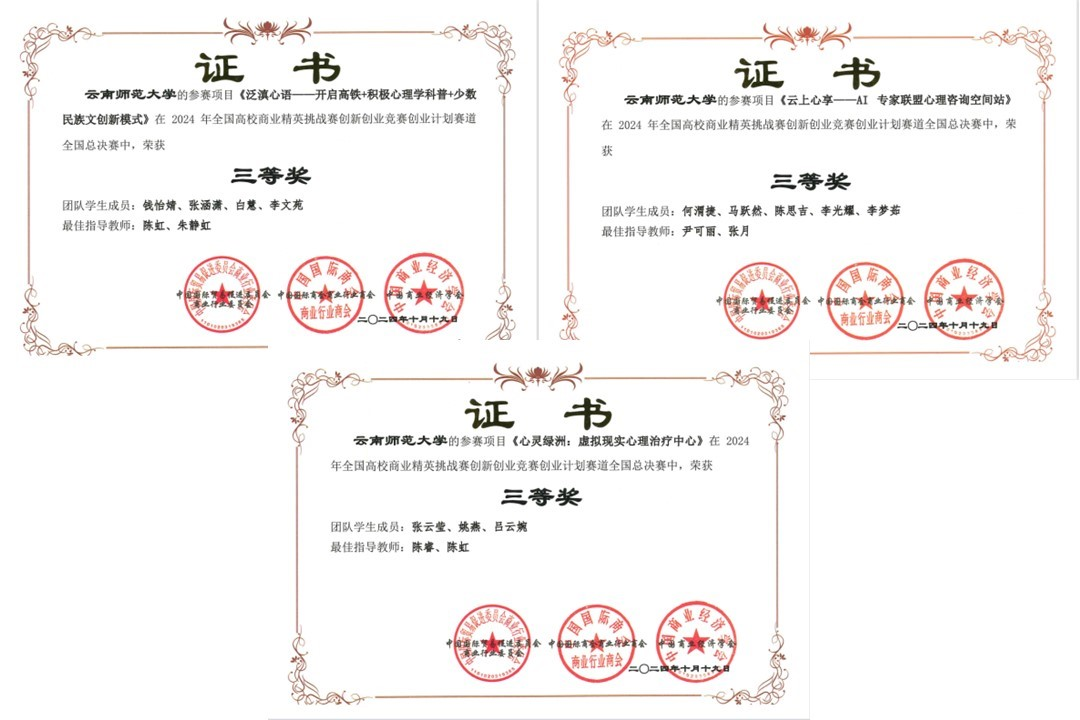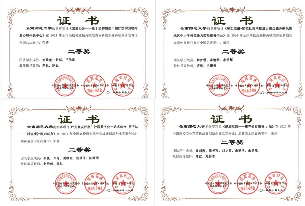 近日,2024年全国高校商业精英挑战赛创新创业竞赛创业计划赛道全国总决赛落幕。共有来自全国各地的31个省、自治区、直辖市的500余所高等院校的3000余支参赛队报名参赛。由永利官网教育学部学子组成的7支代表队,在教师的悉心指导下,经过知识赛、校赛、区域赛和全国总决赛的层层选拔,最终在10月19日的创业计划赛道全国总决赛(线上)中取得了4项二等奖、3项三等奖的优异成绩。