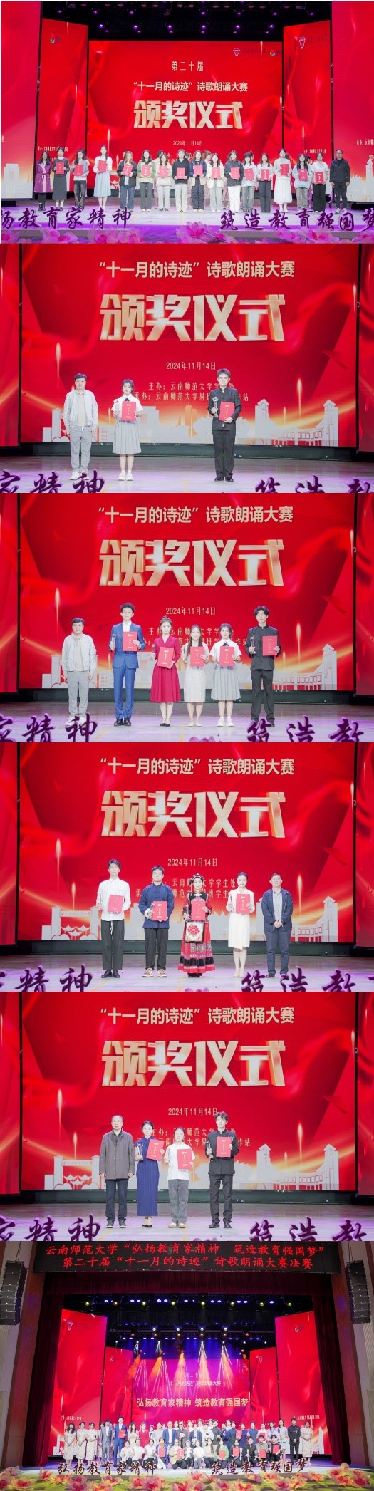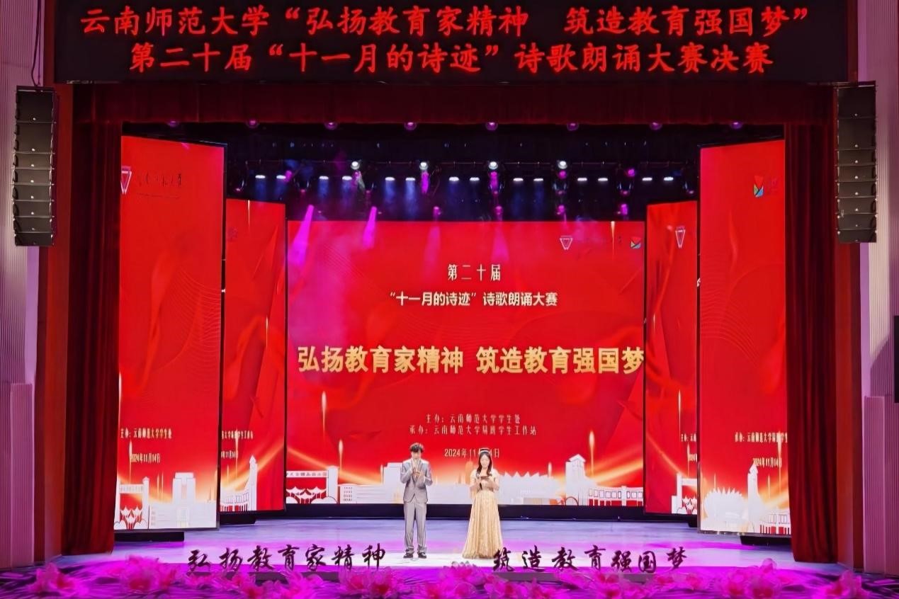 11月14日下午,由学生处主办、校易班学生工作站承办的“弘扬教育家精神,筑造教育强国梦”第二十届“十一月的诗迹”诗歌朗诵大赛决赛在永利官网呈贡校区明德5号楼演播厅举行。