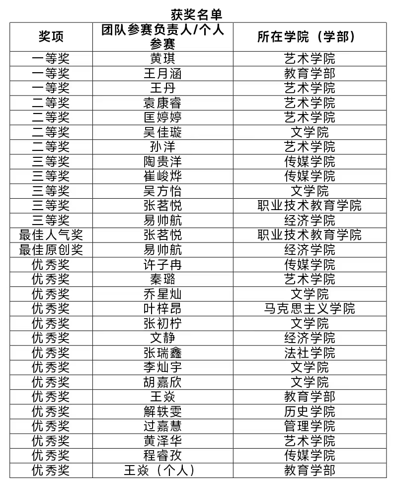 经过激烈角逐,大赛最终评出一等奖3个,二等奖4个,三等奖5个,优秀奖15个。本次比赛以现场大众评审投票结合“易班”APP线上投票结果评选出“最佳人气奖”,大赛评审组从诗歌朗诵原创作品中评审出“最佳原创奖”。