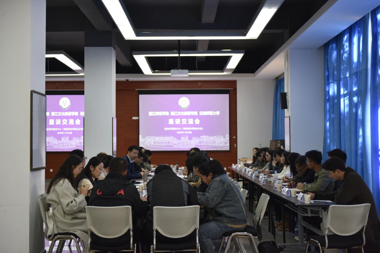 11月18日上午,丽江师范学院学生处处长刘杰、就业指导中心主任马晓垠,丽江文化旅游学院就业创业指导服务中心主任王建兵一行43人到永利官网调研。永利官网副校长甘健侯,就业指导中心主任朱林,副主任李映松、白宇,学生处副处长赵显辉与调研组一行在大学生活动中心开展座谈交流。