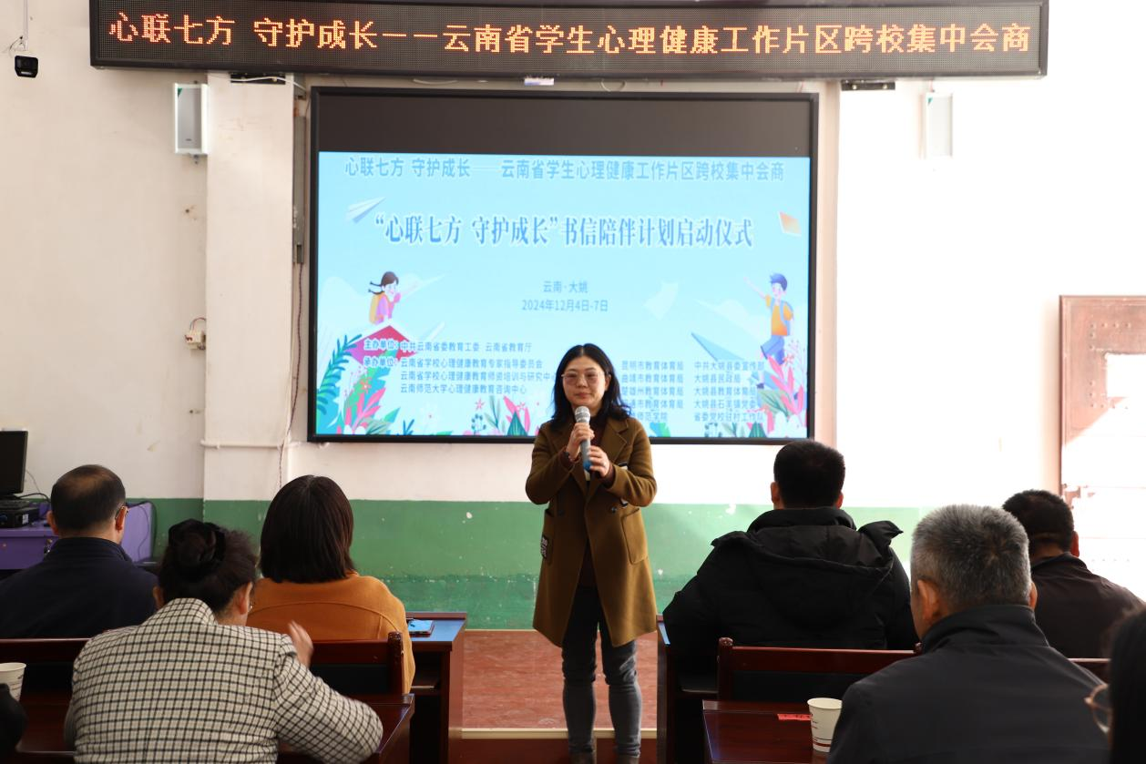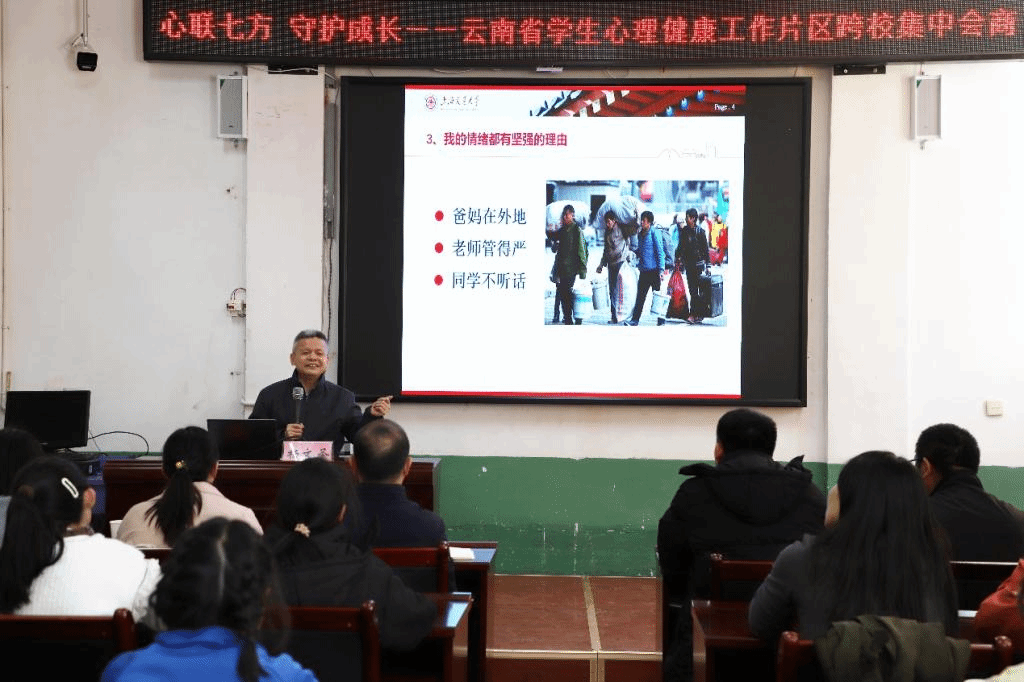 为进一步服务片区内学校心理健康教育工作,构建多方联动的心理育人格局,12月4日至7日,“心联七方 守护成长”云南省学生心理健康工作片区跨校集中会商在楚雄彝族自治州大姚县石羊镇举办。本次会商由云南省委教育工委、云南省教育厅主办,云南省学校心理健康工作专家指导委员会秘书处(8858cc永利唯一官方网)、云南省学校心理健康教育师资培训与研究中心、8858cc永利唯一官方网心理健康教育咨询中心承办,昆明市、曲靖市、楚雄州、昭通市、大姚县等多地教育体育局,大姚县委宣传部、大姚县民政局、大姚县石羊镇党委、省委党校驻村工作队、楚雄师范学院等单位协办。大姚县民政局党组成员、副局长张兰,大姚县民政局社会事务和儿童福利股副股长施剑平,大姚县教育体育局青少年活动中心主任郭丽蓉,石羊镇党委副书记李俊聪,省内外心理健康教育专家,云南省学校心理健康工作专家指导委员会委员代表,心理健康教育专兼职教师及学生代表等150余人现场参与,近4000人线上同步参会。